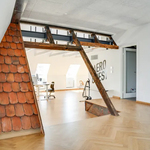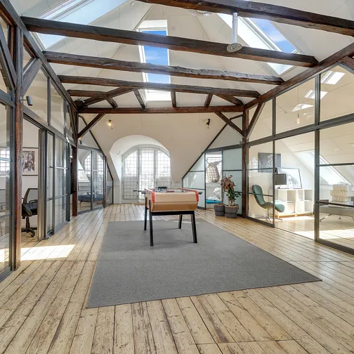 I forbindelse med renoveringen er tagetagerne blandt andet blevet omdannet til moderne kontormiljøer.