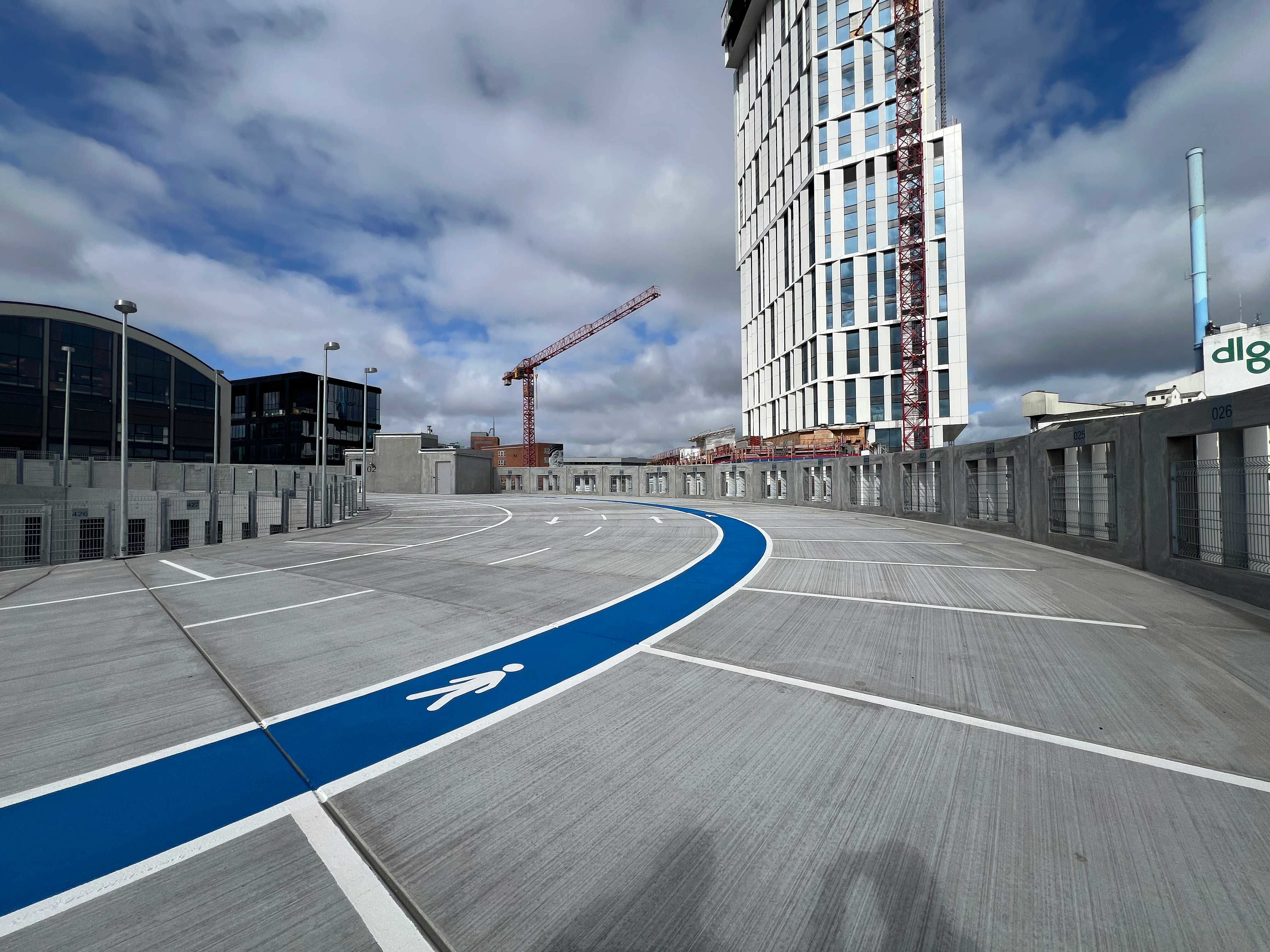 Mindet P-hus rummer cirka 430 bilpladser fordelt over seks etager – svarende til én parkeringsplads pr. 100 m² lejet kontorareal i Mindet 6.