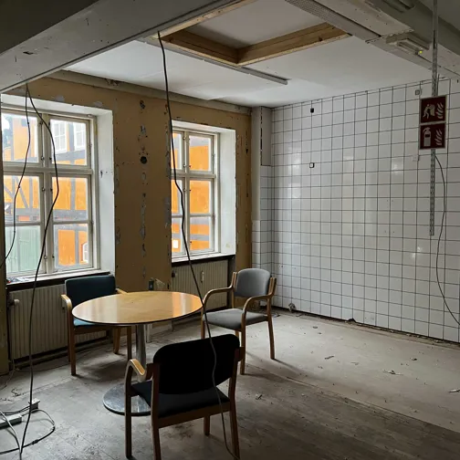 Indretningen udvikles i dialog med kommende lejer, så rummets kvaliteter og den fremtidige anvendelse hænger sammen.