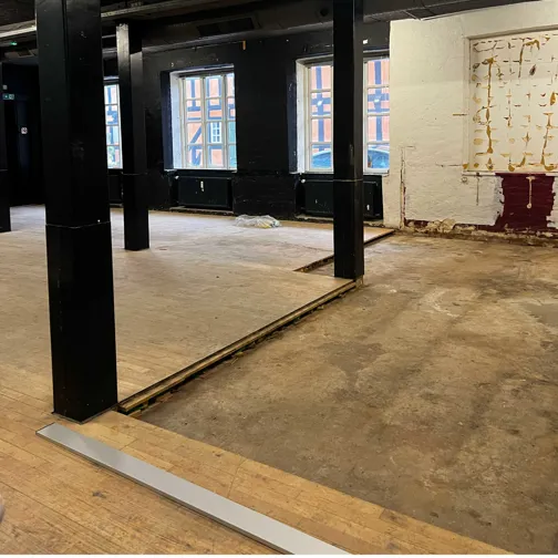 De gamle rum står i dag tomme. Et trægulv er brudt op. Installationer hænger frit. Bag det slidte træ træder noget ældre og mere bestandigt frem.