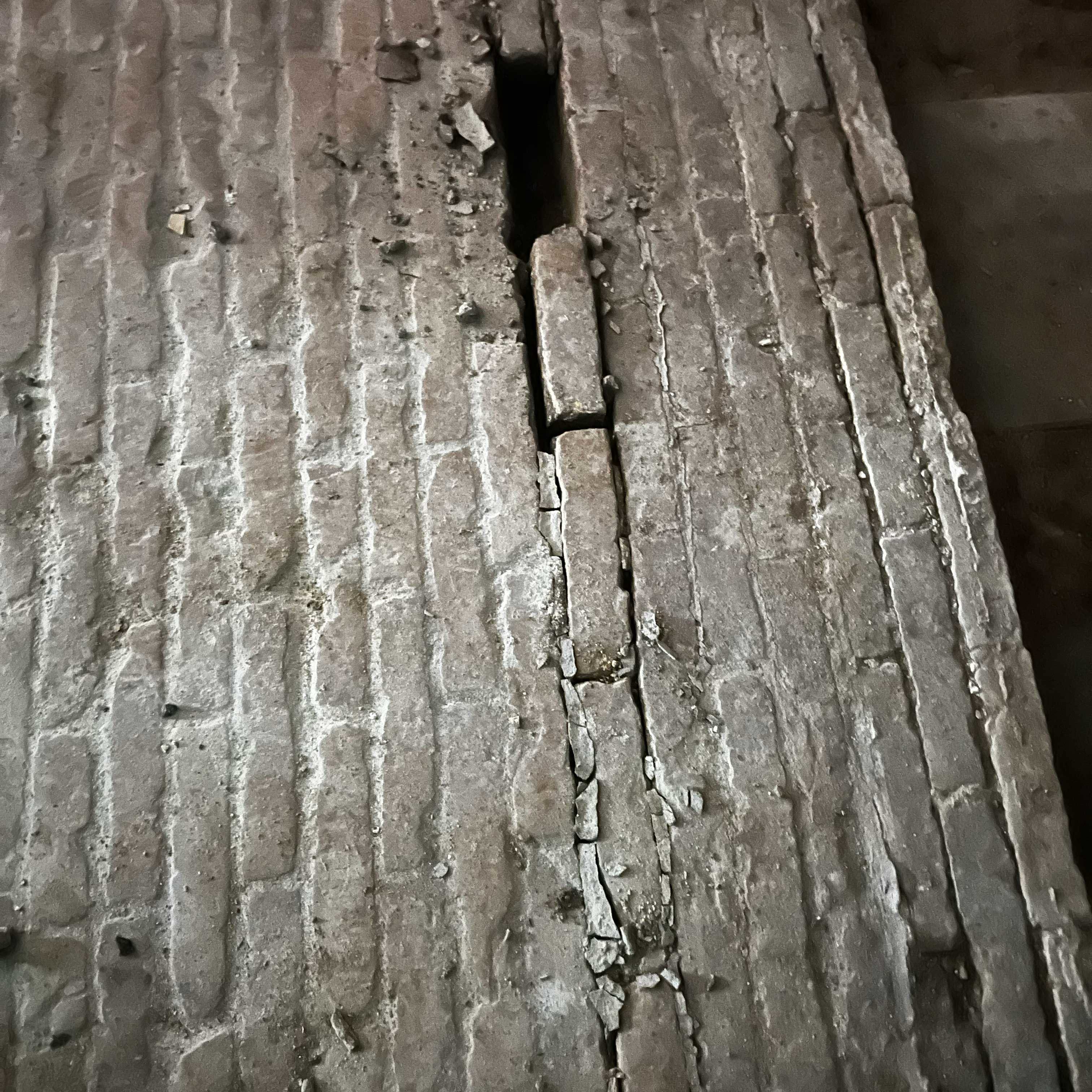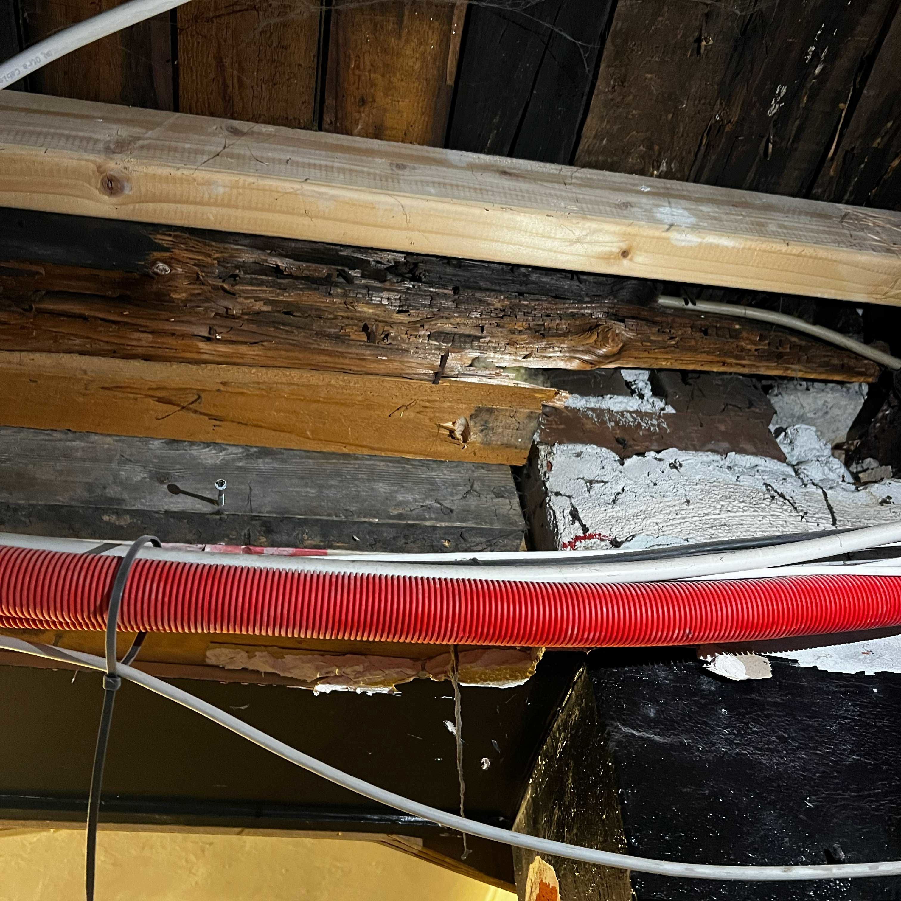 De gamle rum står i dag tomme. Et trægulv er brudt op. Installationer hænger frit. Bag det slidte træ træder noget ældre og mere bestandigt frem.