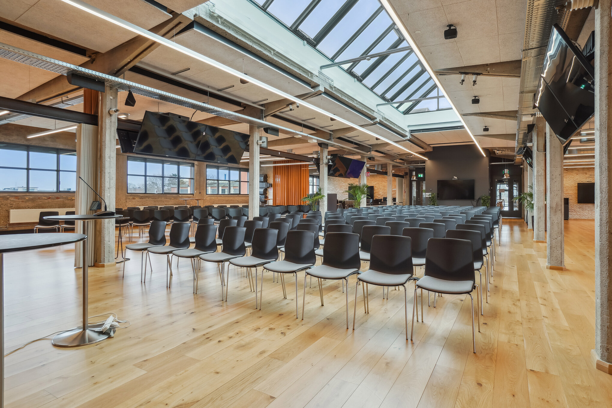 Ejendommen fremstår flot og i indflytningsklar stand med en optimal planløsning, hvor 3. salen kan rumme op mod 140 arbejdsstationer.