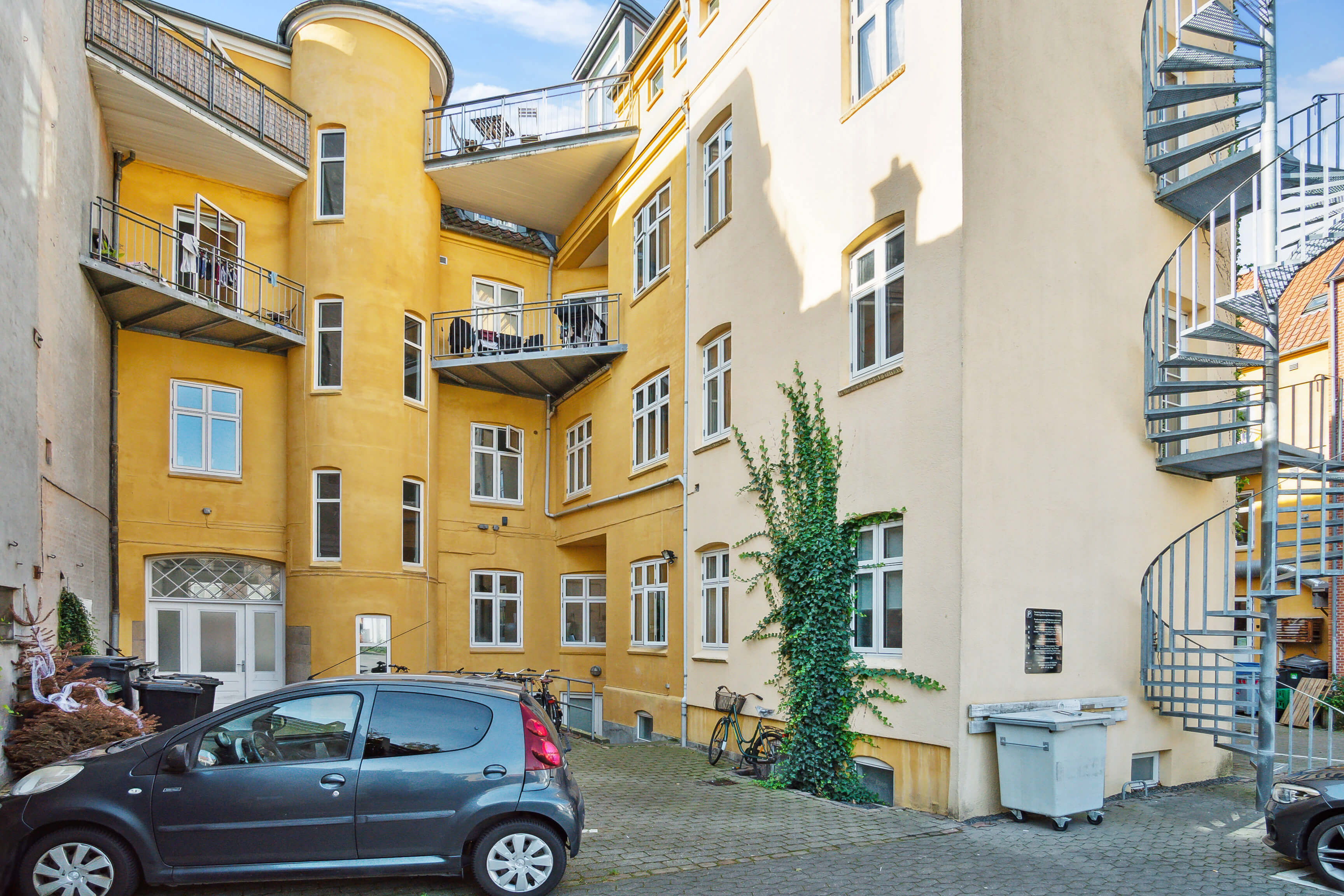 Med beliggenheden ud til Grønnegade er du fint beliggende tilbagetrukket fra gadens støj, og alligevel har du bylivet tæt på. Perfekt til delelejligheden eller parret, der gerne vil bo centralt og godt.