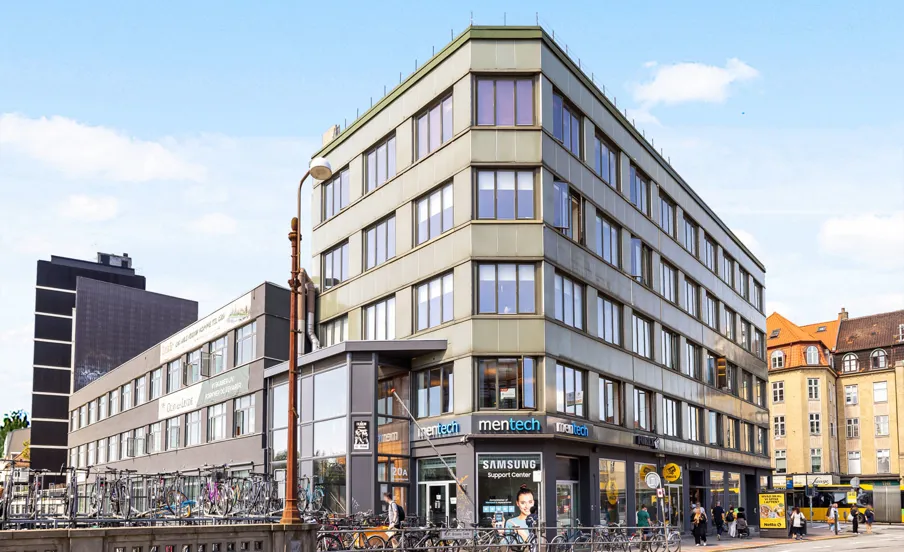 Hjørnebygning fra 1936–37 opført som bladhus for avisen Demokraten. I dag rummer ejendommen erhvervslejemål i stueetagen og på første sal samt boliger i de øvre etager.