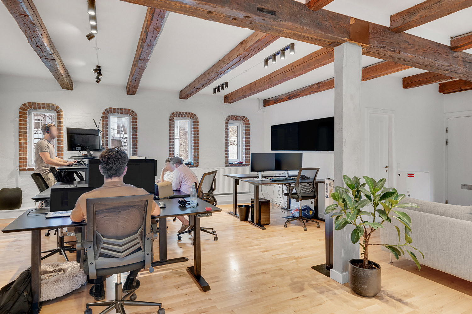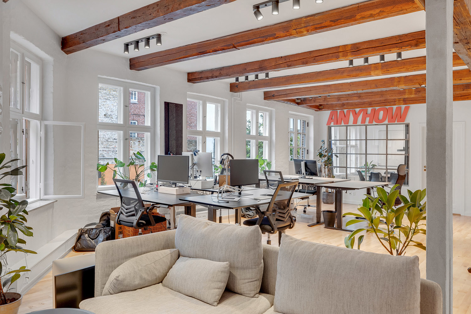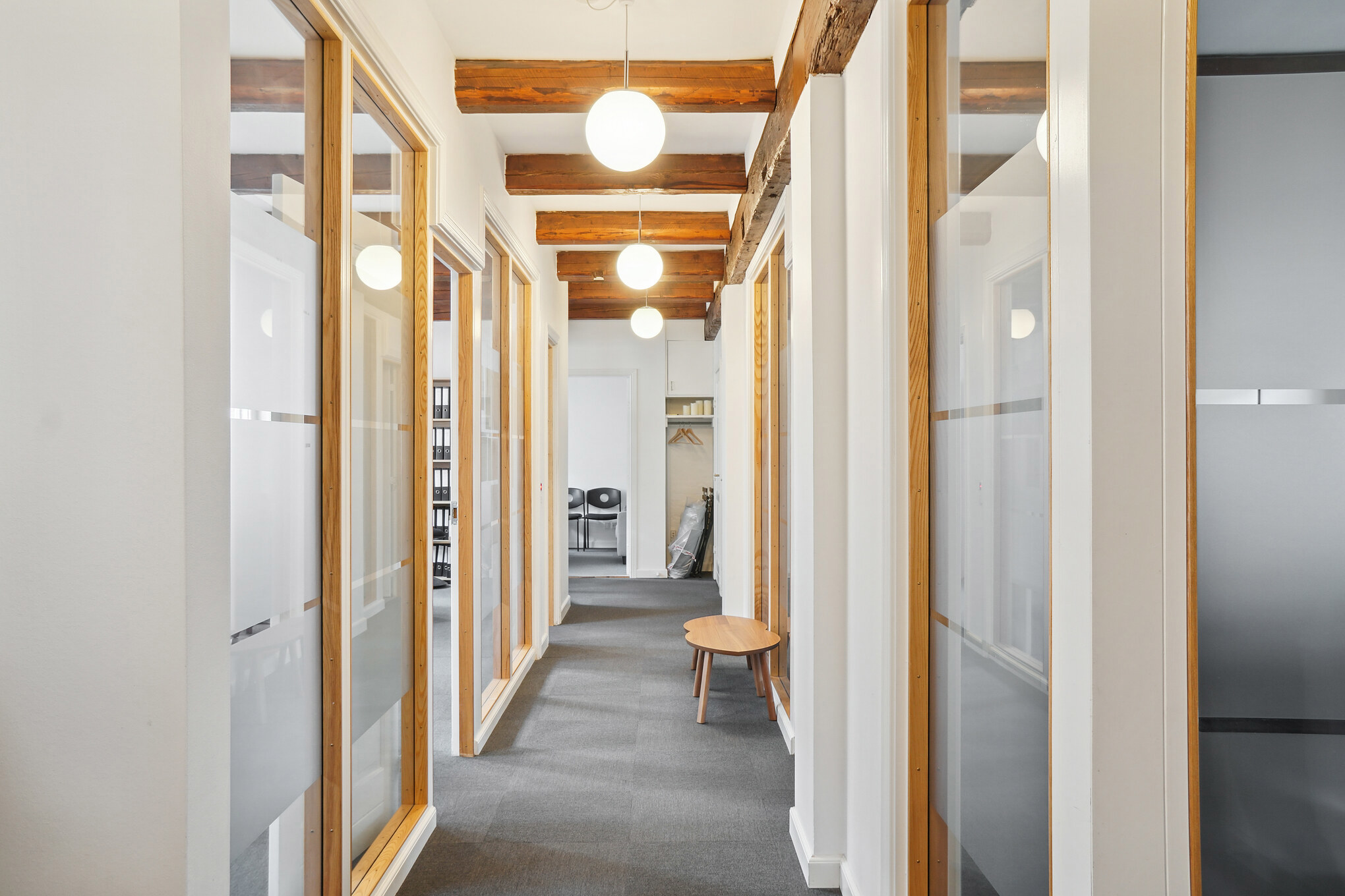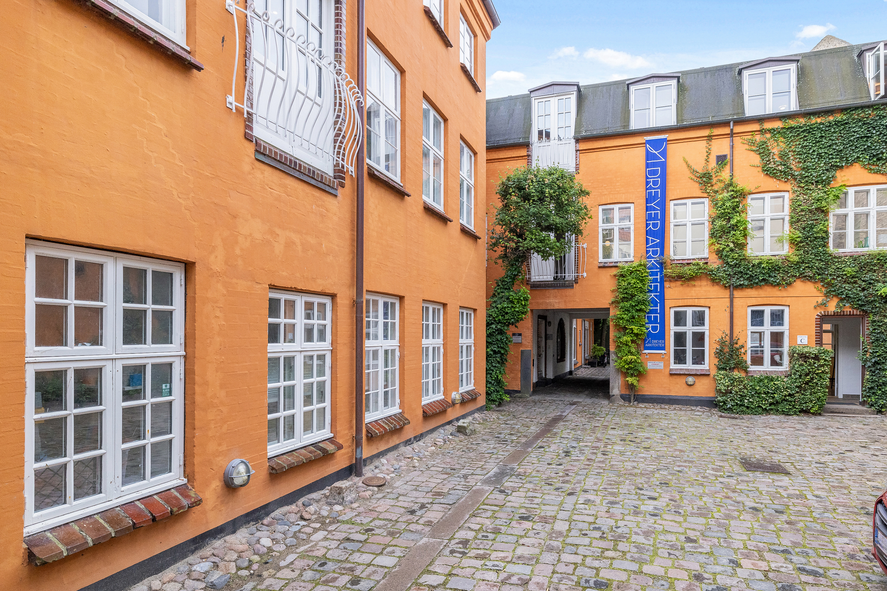 Smukt renoveret bygningskompleks i Frederiksgade tæt ved Rådhuset, Banegården, Musikhuset og gågaderne… Ja, midt i byens puls. Ejendommen rummer både erhvervslejemål, herunder kontor og restaurationer samt boliglejemål. Overalt fremtræder ejendommen pæn og meget indbydende med smukke parketgulve og rustikke vægge. En del bjælkekonstruktioner er synlige, og lokalerne fremstår meget lyse med lysindfald fra tre sider.