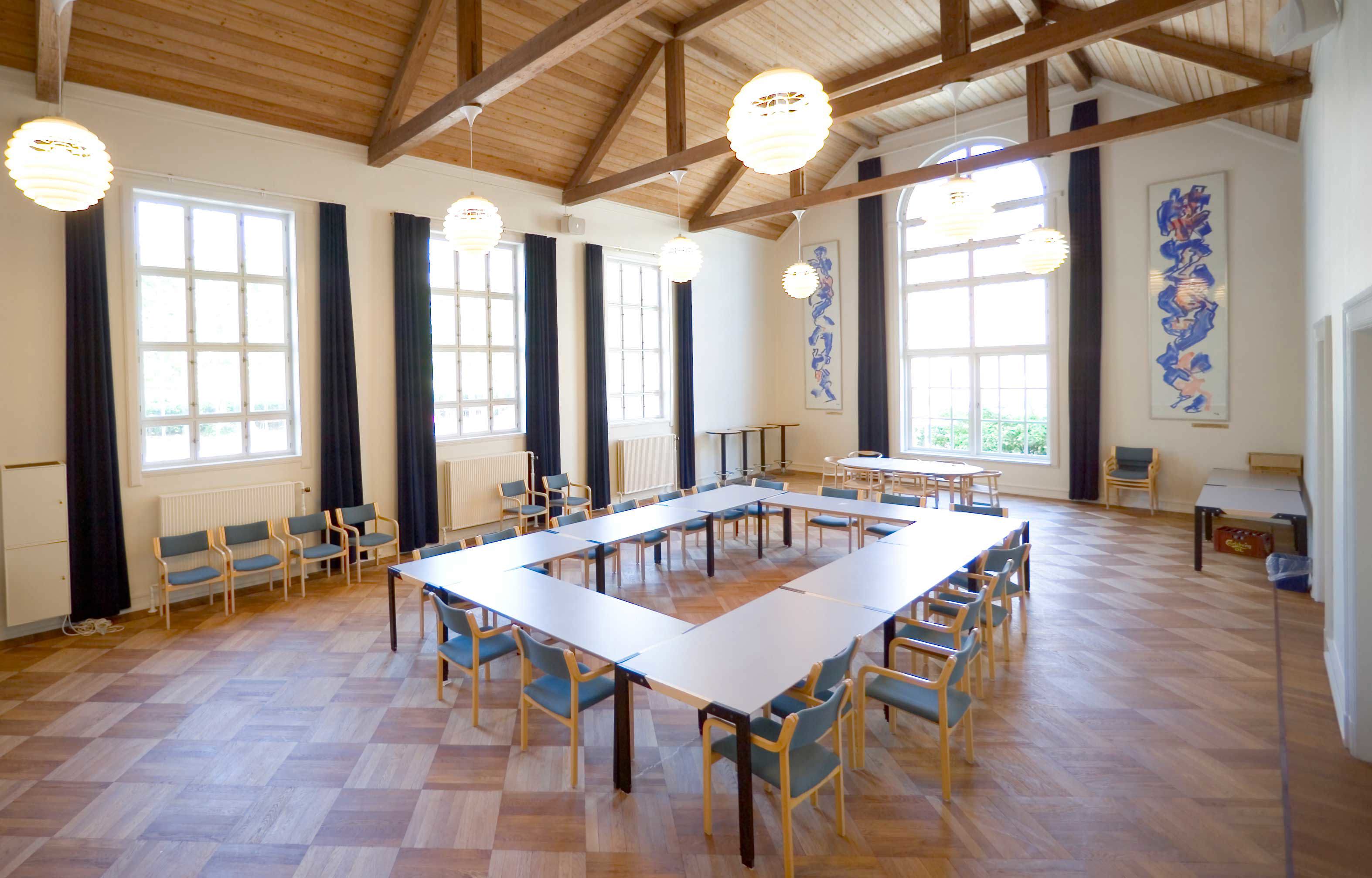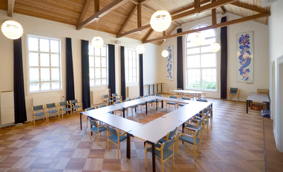 Bygningen er restaureret med opmærksomhed på de originale materialer og detaljer. Træværk, konstruktioner og overflader er bevaret og indgår som en integreret del af den nuværende brug.