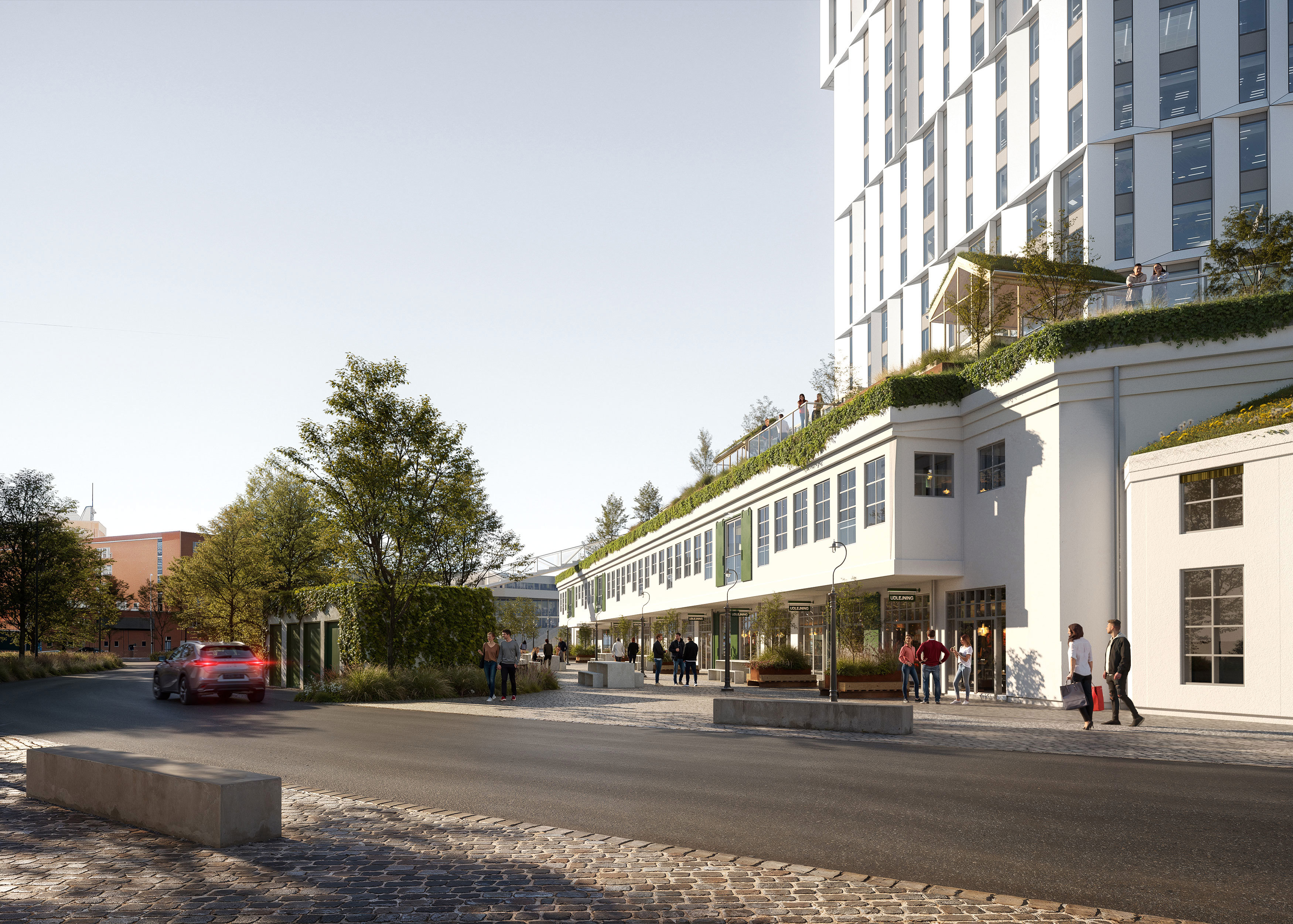 Tårnet, som er tegnet af C.F. Architects, bliver integreret med den eksisterende historiske bygning. Det topmoderne højhus er bygget i kvalitetsmaterialer og har alt i moderne komfort, mens den eksisterende bygning kommer til at summe af liv i både restauranter, butikker, fitnesscenter og virksomheder indenfor sundhed, sport og klinik.