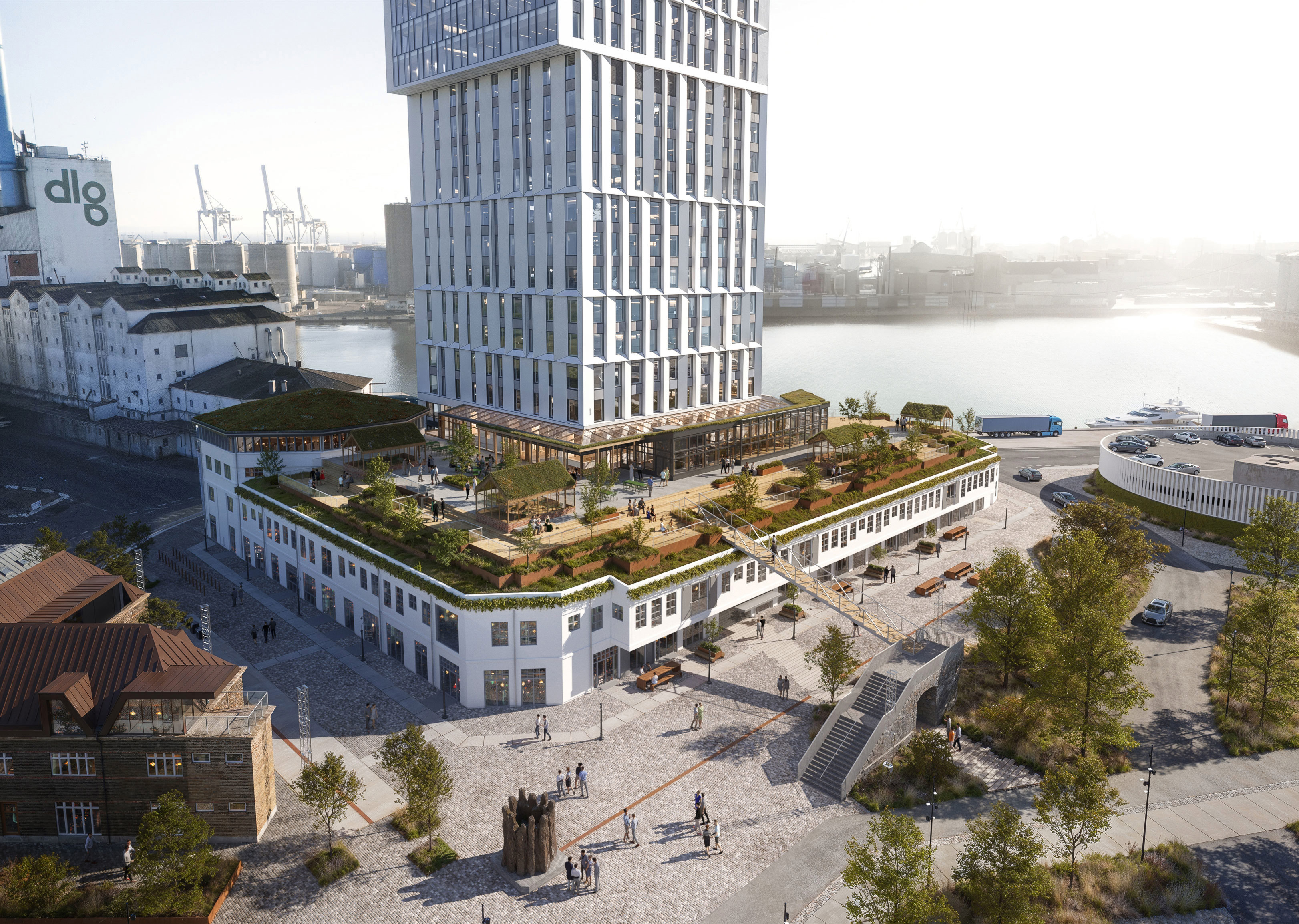 Vi sammenbygger med stor respekt den gamle bygning med et højhus som et symbol på morgendagens kontorbyggeri, og som kan huse en bred flok virksomheder og deres medarbejdere.