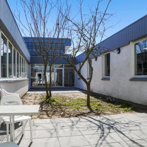 Hvor de eksisterende gulve ikke stod til at redde, er der lagt nye epoxygulve, som sikrer robuste og funktionelle overflader. Også ejendommens gårdhave har fået et løft med nye vinduer mod gårdrummet, rensede fliser og forbedrede bygningsdetaljer, så uderummet igen kan fungere som et opholds- og pauserum. Et nyt indgangsparti samler bygningen og giver en tydelig, imødekommende ankomst.