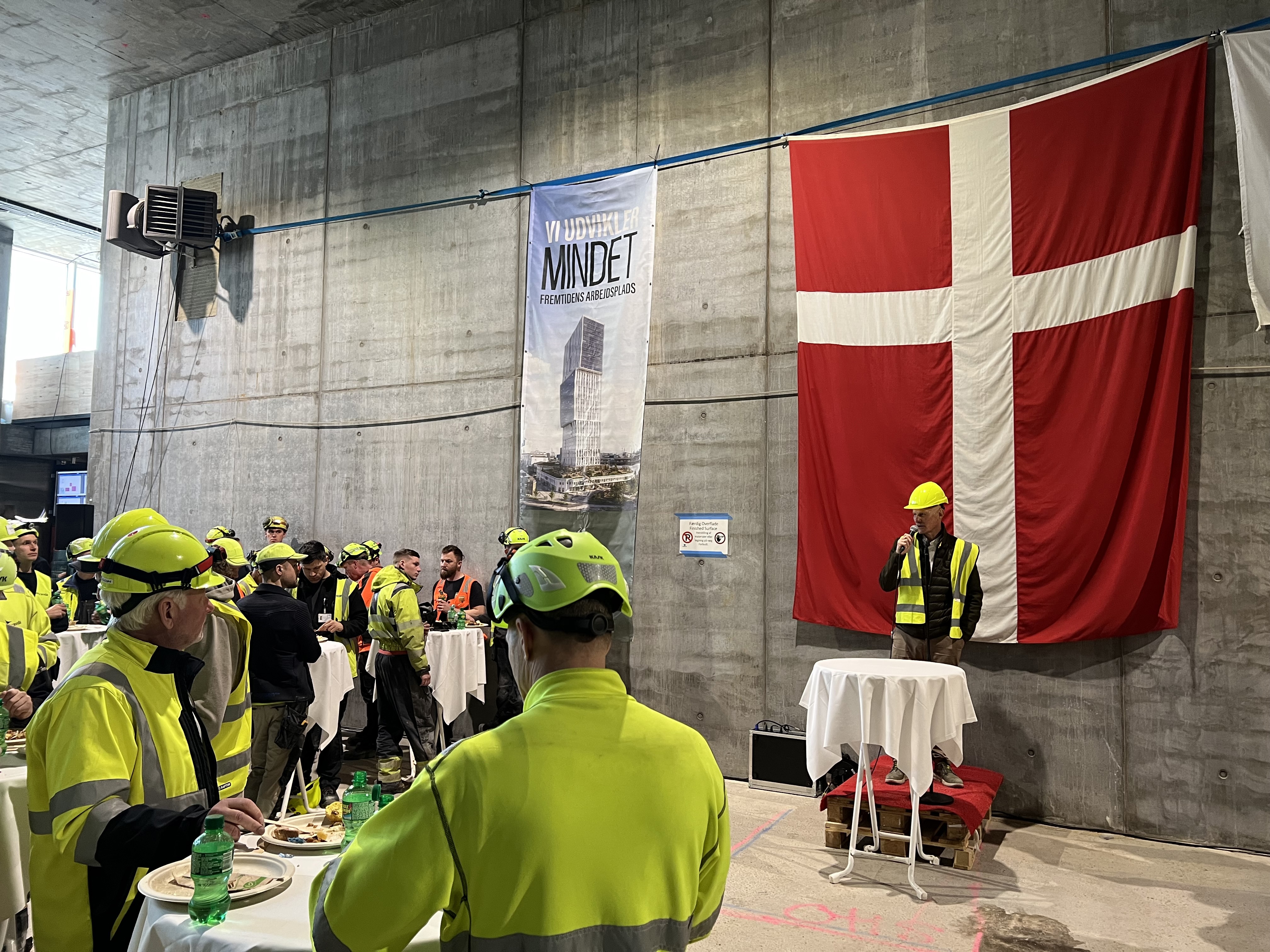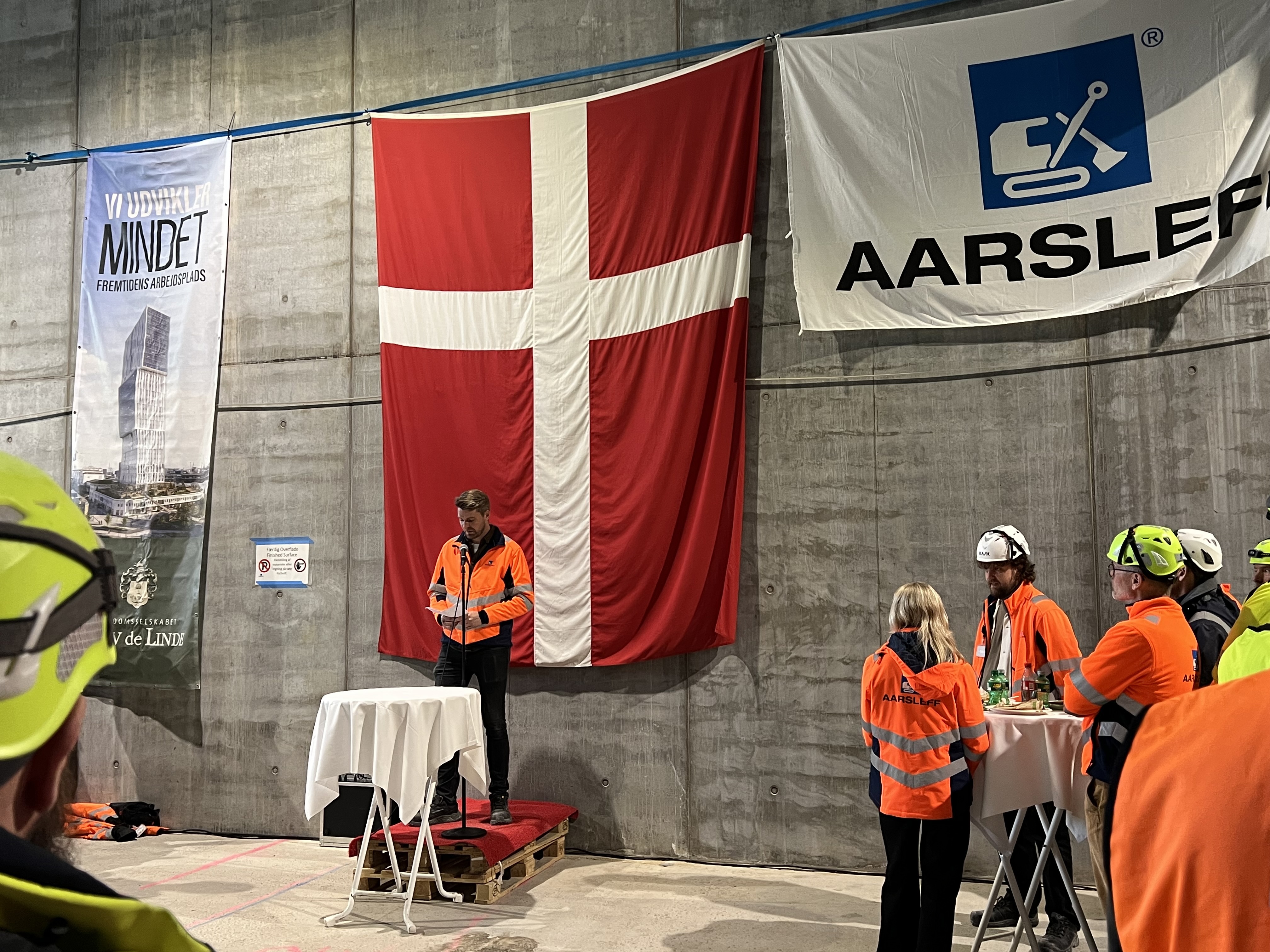 I dag fejrede Ejendomsselskabet Olav de Linde sammen med Aarsleff en central milepæl i opførelsen af Mindet. Rejsegildet markerede, at råhuset nu står færdigt, og det er en anledning til at anerkende det håndværk, engagement og samarbejde, der har bragt projektet hertil.