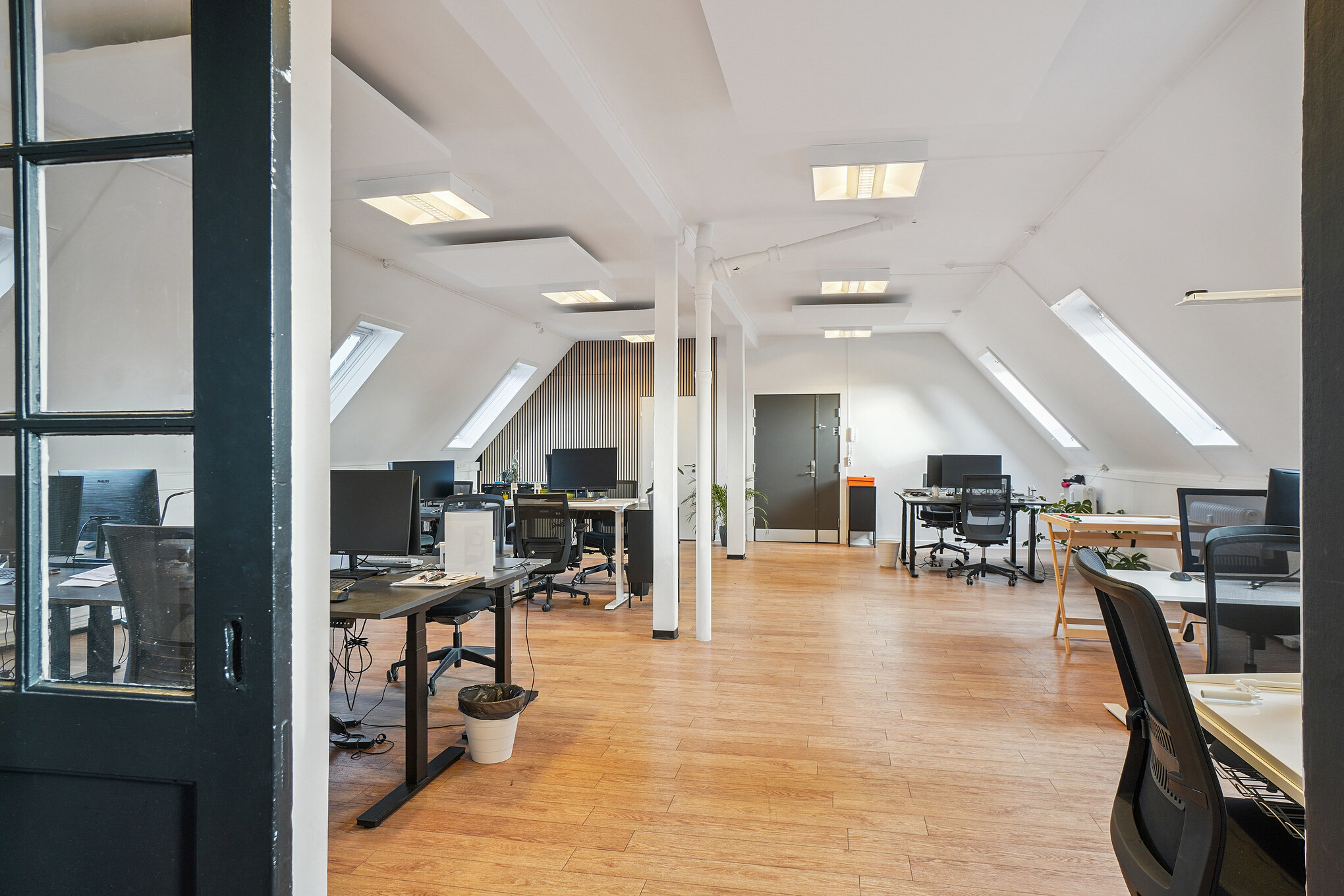 Lejemålet er indrettet lyst og indbydende med et stort storrumskontor, der skaber plads til dynamisk samarbejde og fleksible indretningsmuligheder. Hertil kommer et separat kontor/møderum, et åbent mødeområde i tilknytning til tekøkkenet samt to toiletter. Det gode naturlige lysindfald og udsigten til både gade- og gårdmiljø skaber en inspirerende atmosfære i hverdagen.