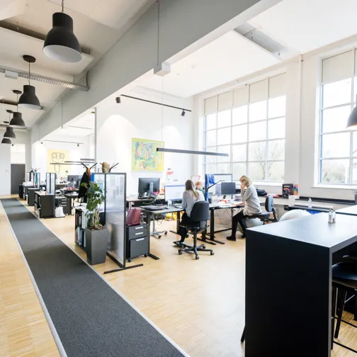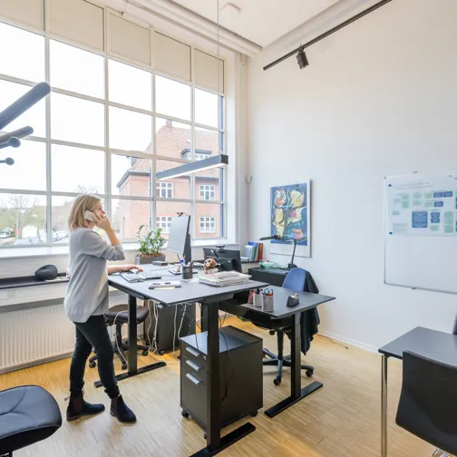 I Kontorhuset Thrige får du en fleksibel kontorløsning, hvor du både kan leje en plads i et fælles kontor eller vælge dit eget kontor med plads til mindre enheder eller større teams. Huset er indrettet til en effektiv arbejdsdag, uanset om du arbejder alene, i mindre grupper eller har brug for faste rammer til et voksende hold.