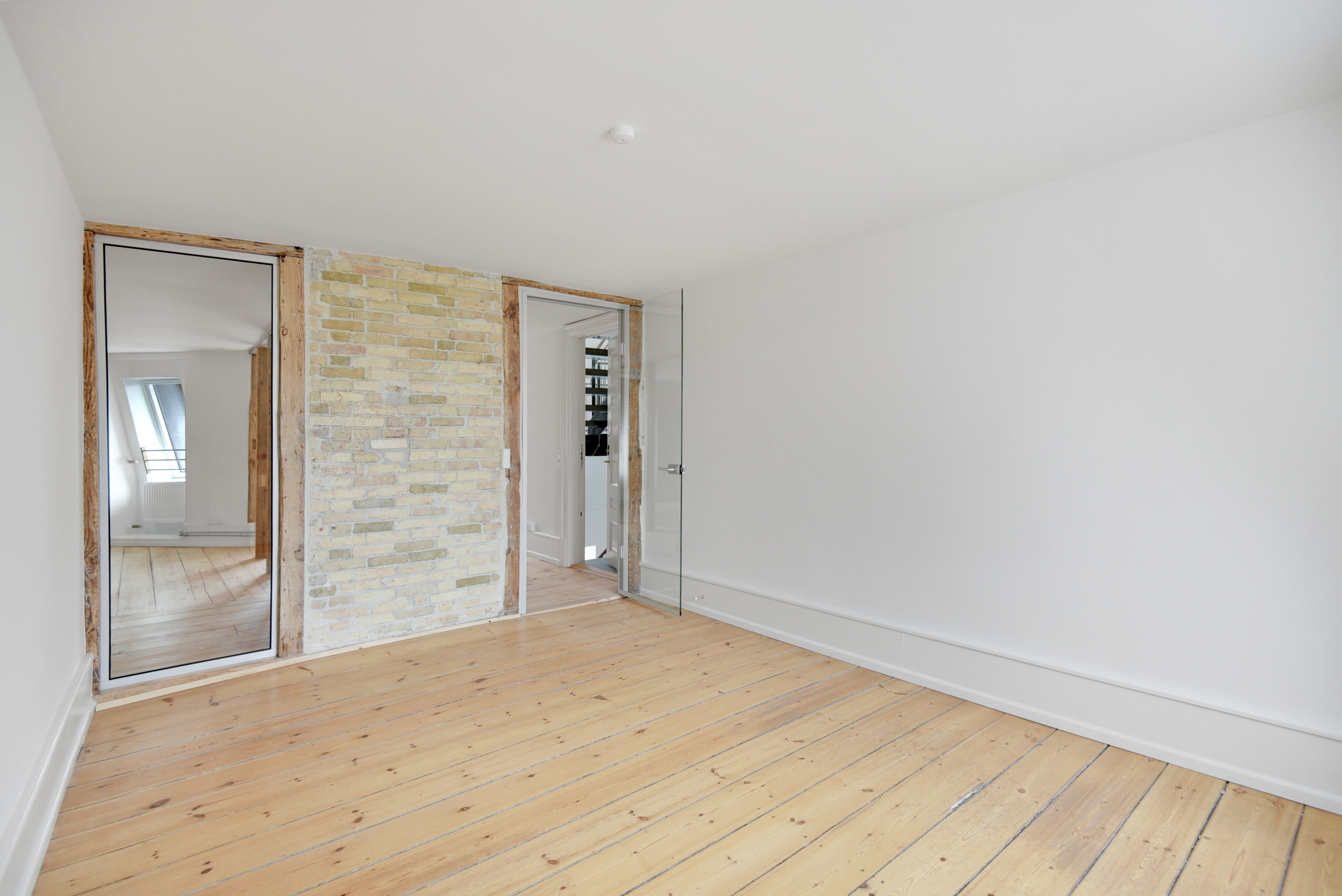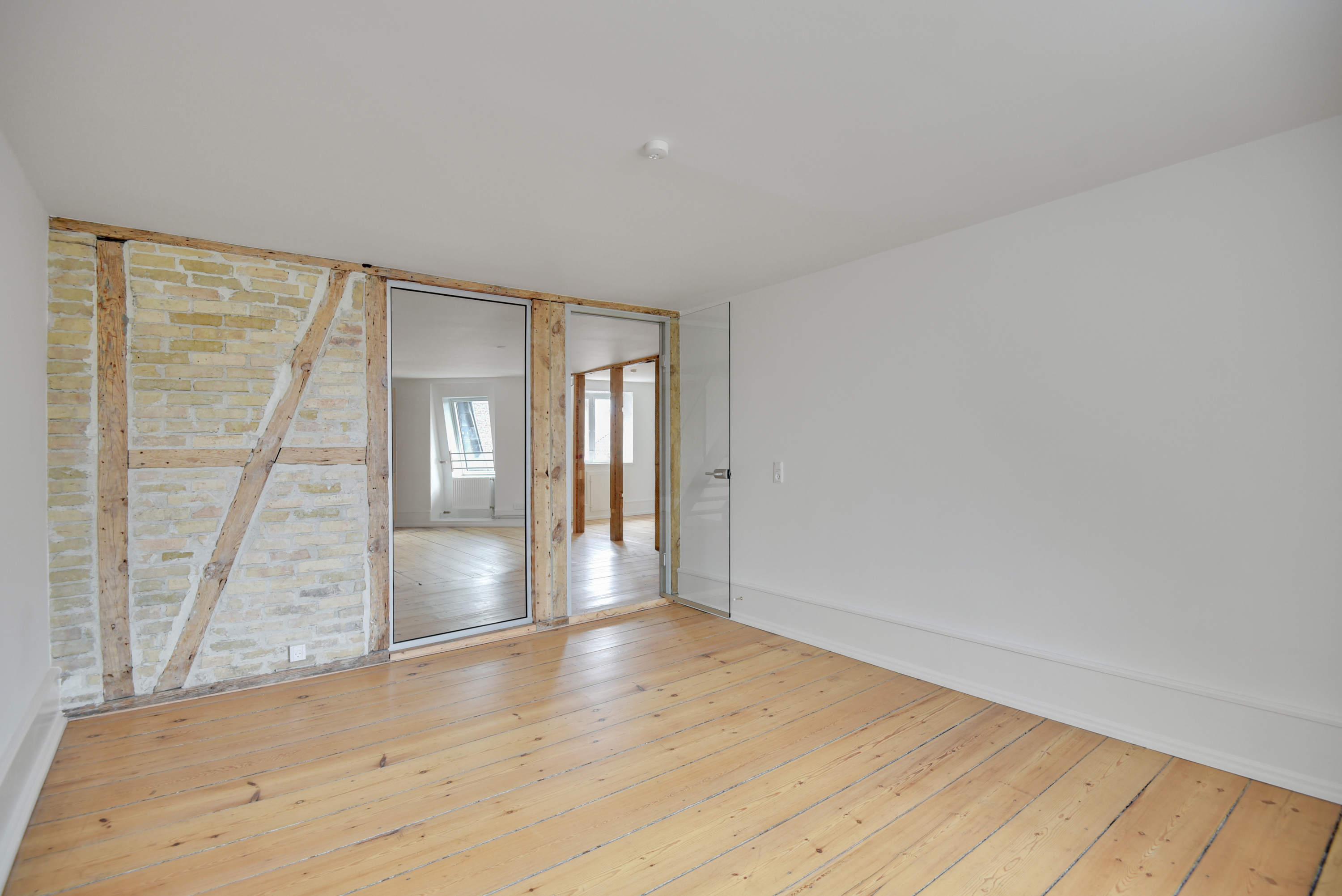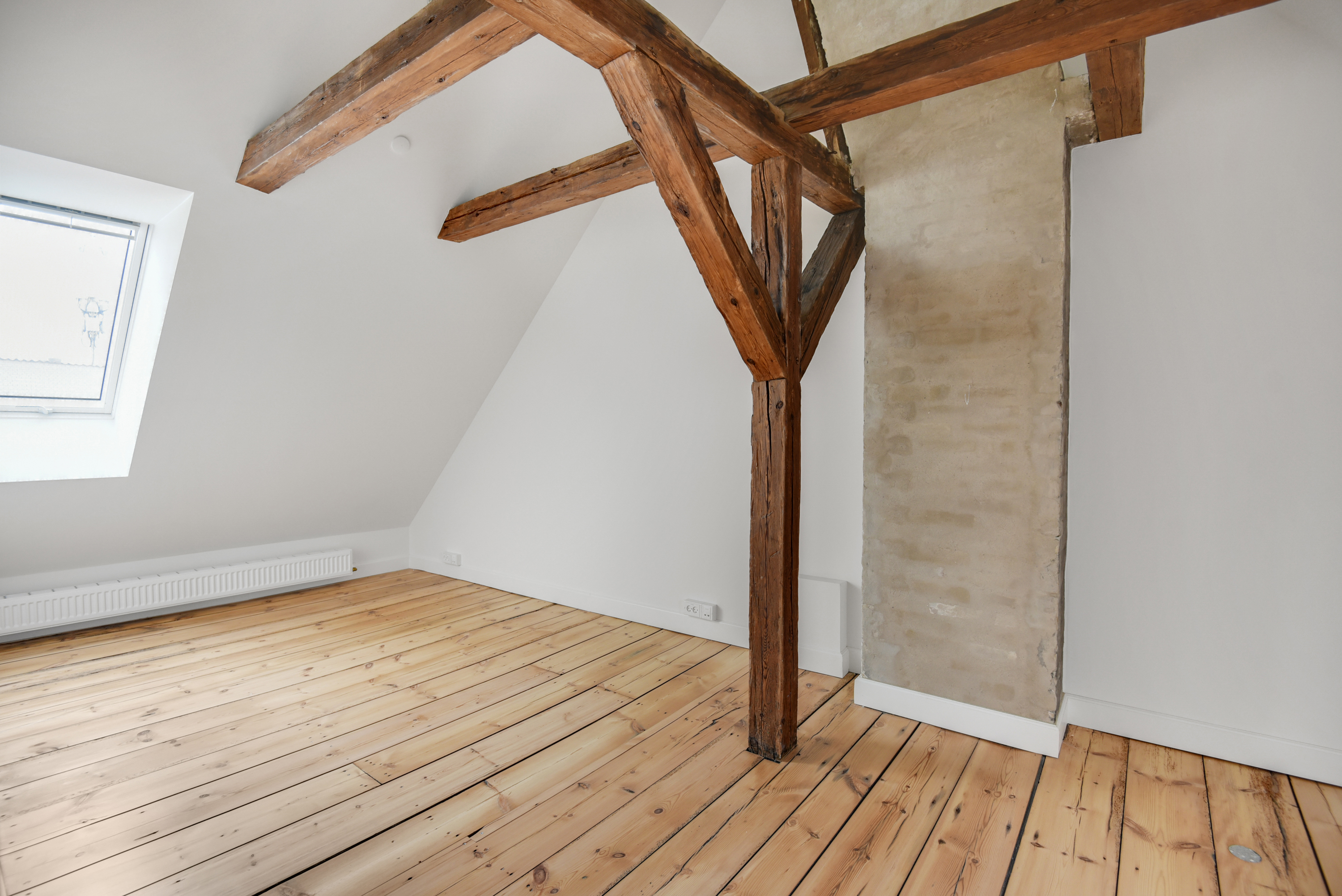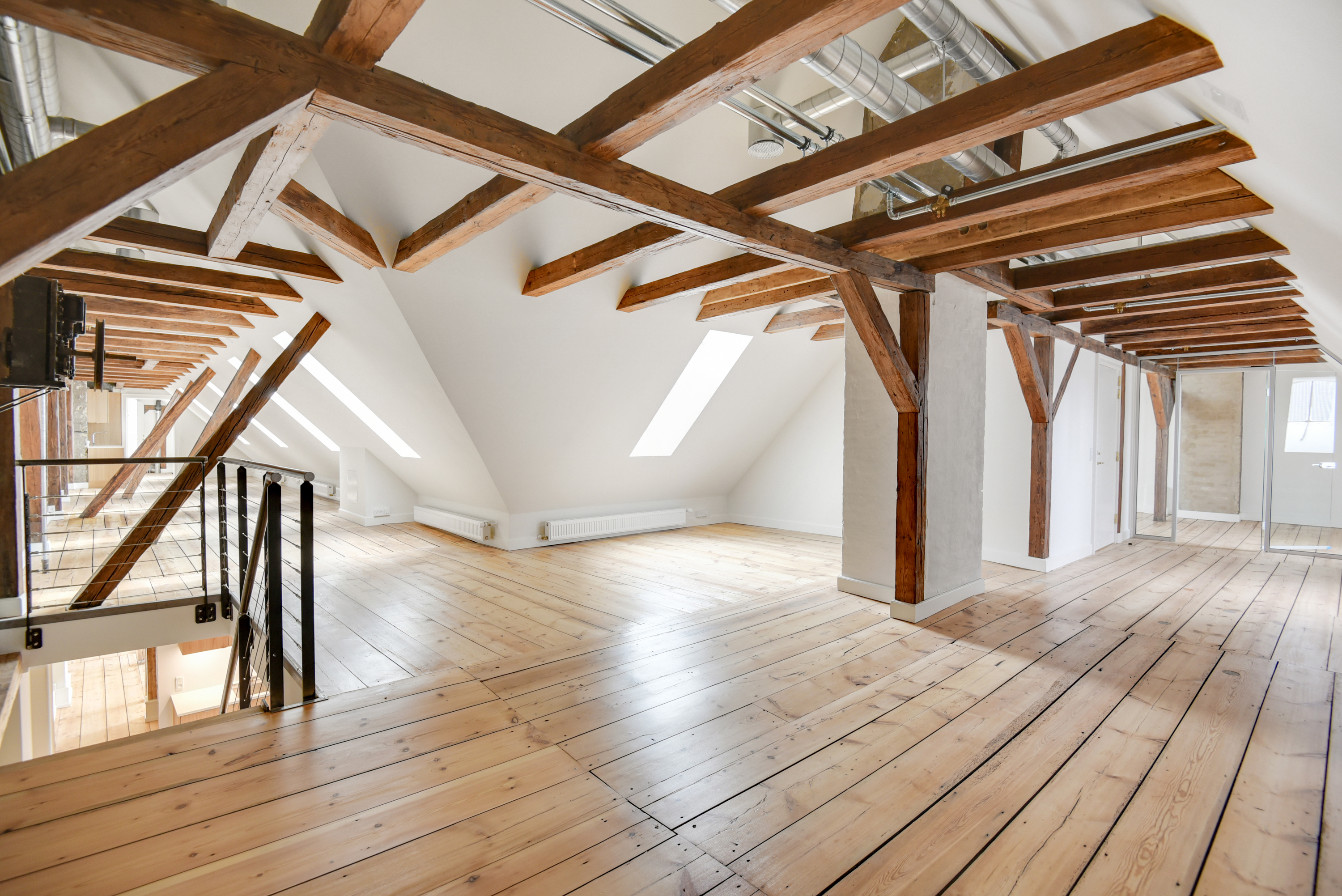 Lejemålet er renoveret med respekt for ejendommens originale detaljer, hvilket skaber en unik balance mellem moderne kontorfaciliteter og historisk charme. De synlige bjælker, murstensvægge og den imponerende loftshøjde bidrager til et stemningsfuldt miljø, mens de store vinduespartier giver et generøst lysindfald og en inspirerende atmosfære.