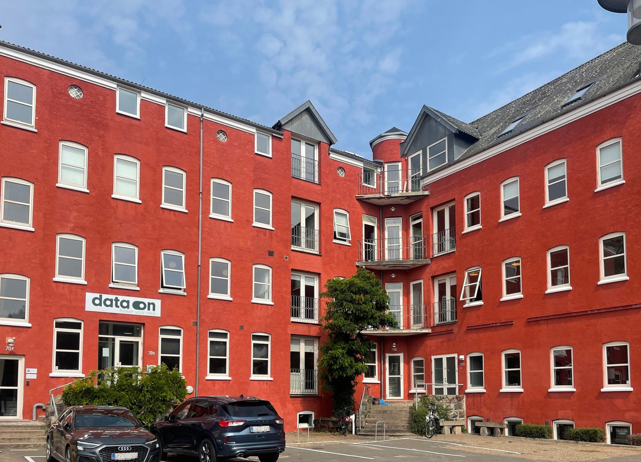 I den iøjnefaldende røde bygning på Nørre Allé 70 i det centrale Aarhus, finder du Ejendomsselskabet Olav de Lindes otte værelser til leje.