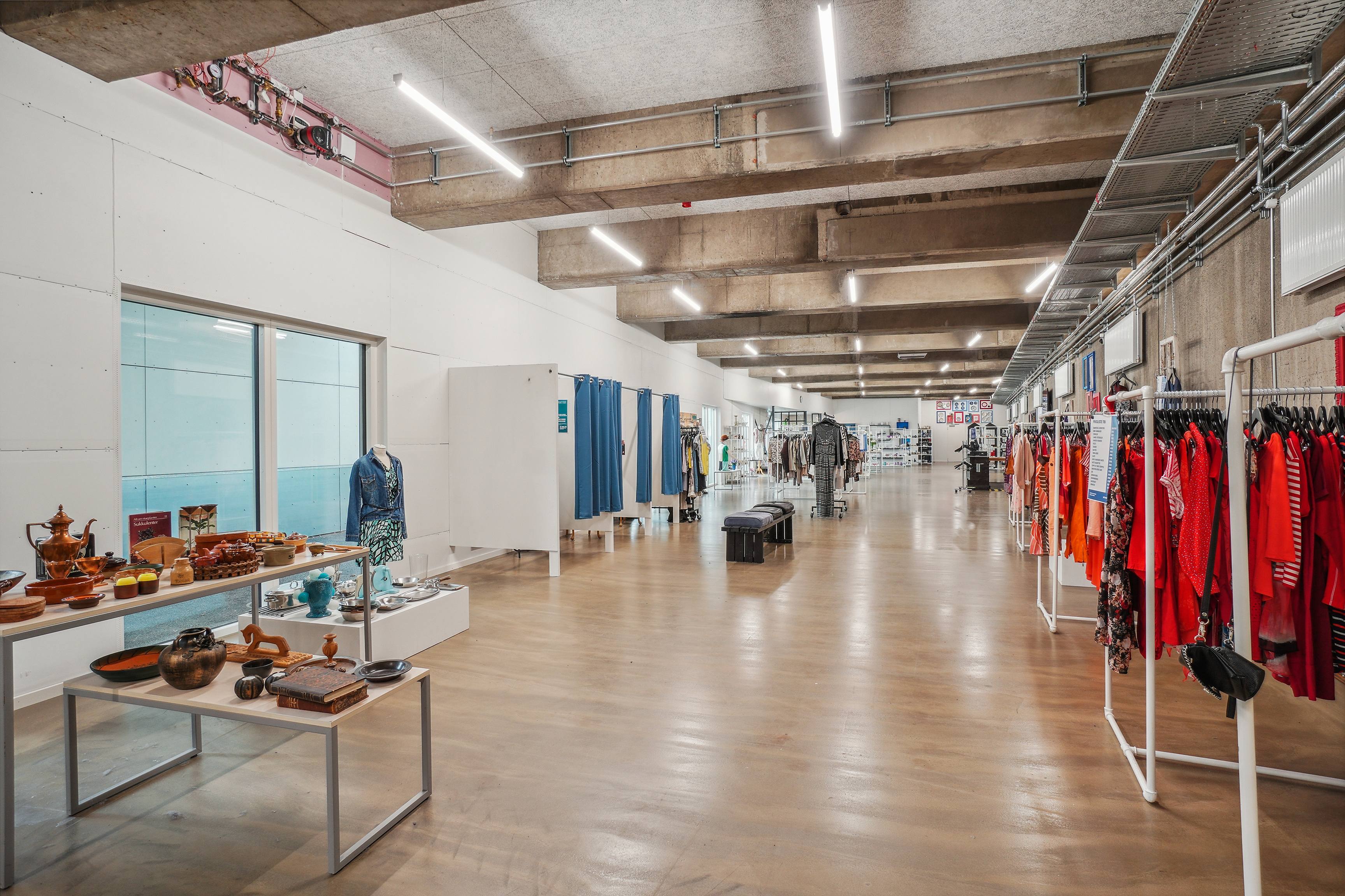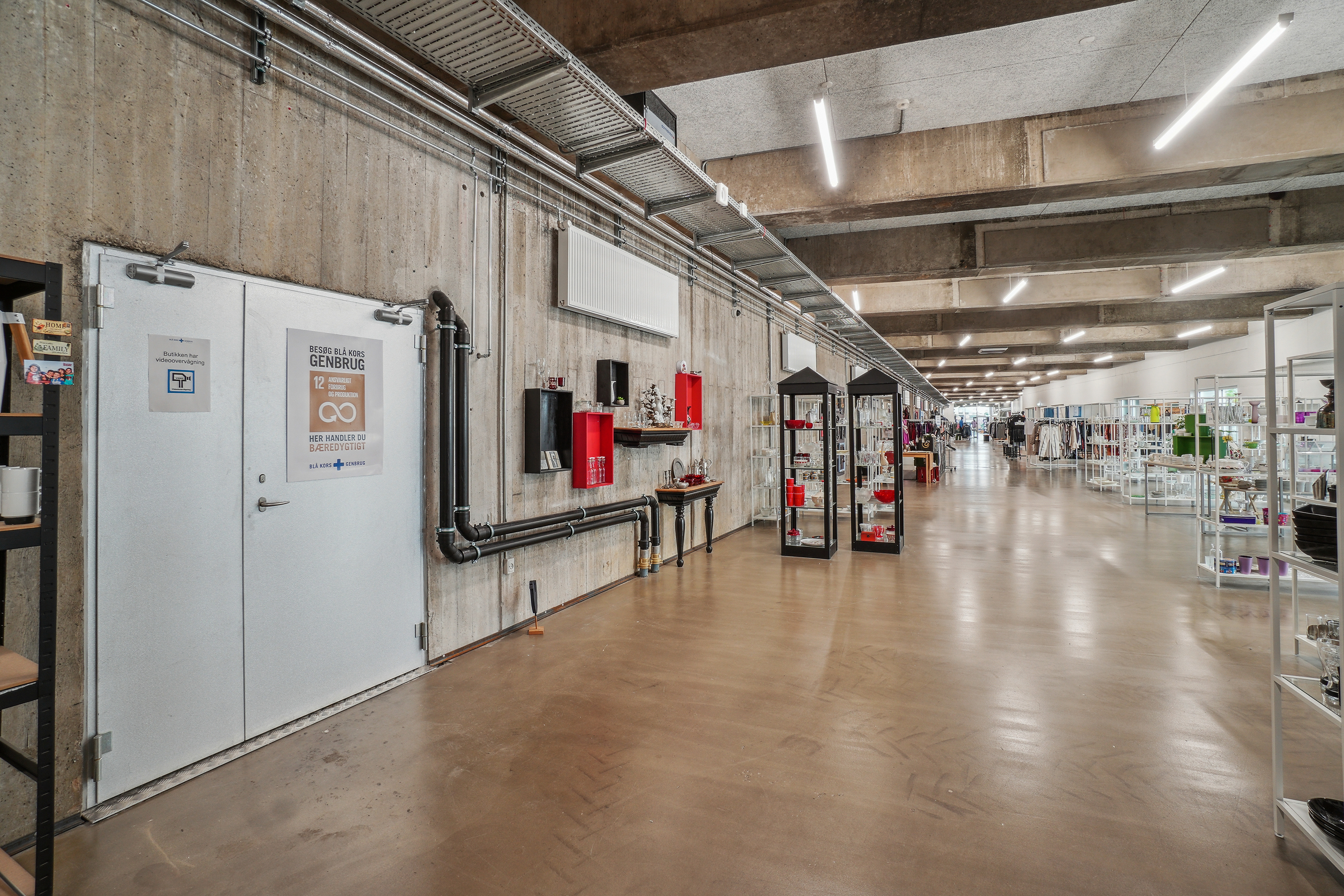Blå Kors-butikken på 1389 kvm sælger genbrugsvarer inden for mange områder, og indtjeningen går til at hjælpe børn, unge og voksne i Danmark, der selv eller som pårørende kæmper med misbrug og andre sociale problemer.