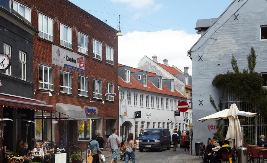 Stueetagen er indrettet til butik med direkte adgang fra fortovet og store vinduer mod gaden. Indretningen gør det muligt at bruge lokalet til detailhandel eller udadvendte funktioner med synlighed fra gaderummet. Indgangen ligger i niveau med gaden og understøtter en enkel adgang for kunder og besøgende.