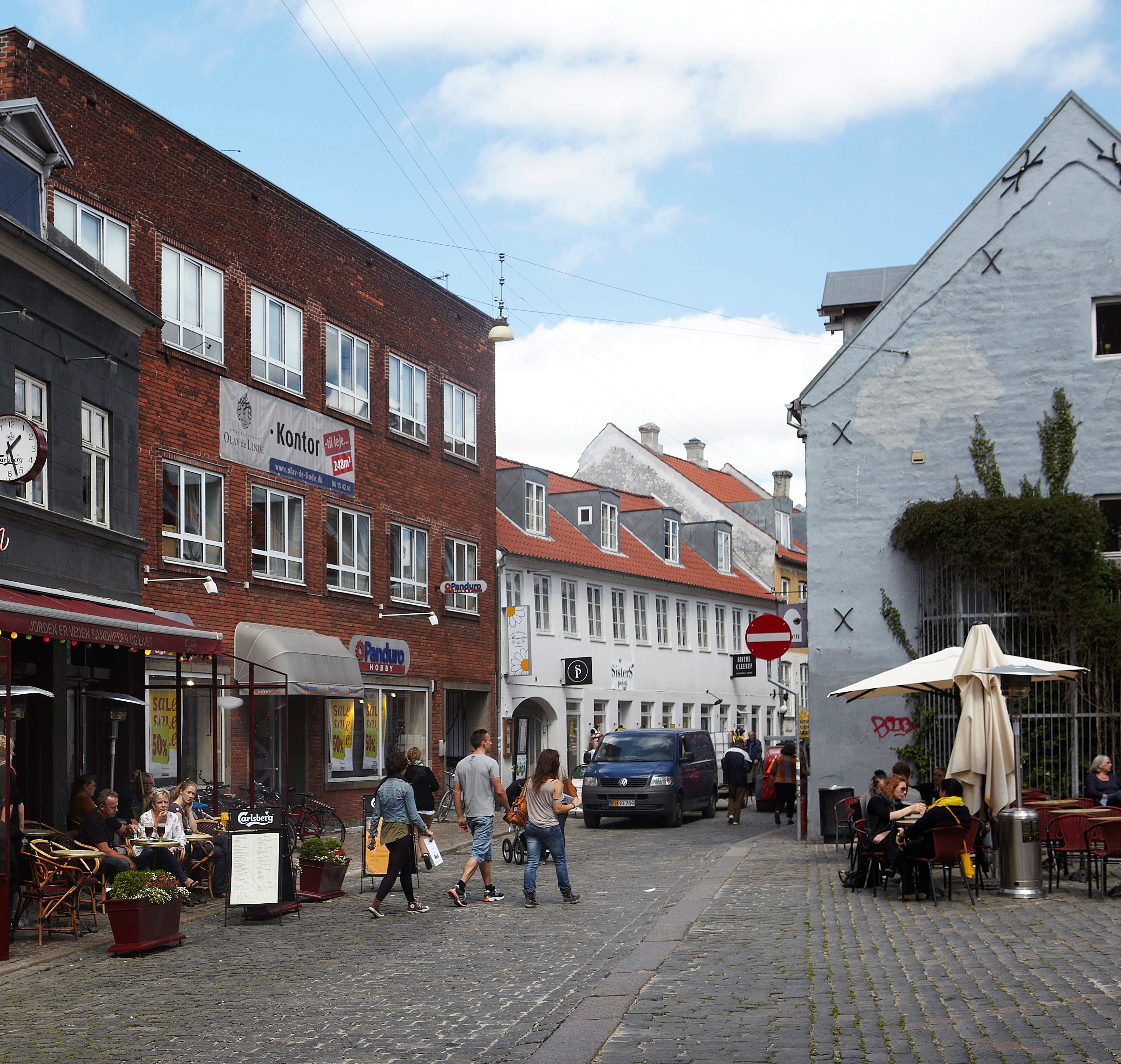 Stueetagen er indrettet til butik med direkte adgang fra fortovet og store vinduer mod gaden. Indretningen gør det muligt at bruge lokalet til detailhandel eller udadvendte funktioner med synlighed fra gaderummet. Indgangen ligger i niveau med gaden og understøtter en enkel adgang for kunder og besøgende.