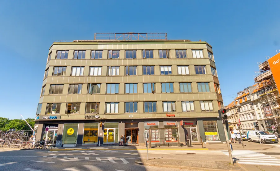 Markant ejendom i det centrale Aarhus opført som bladhus for avisen Demokraten. I dag er den indrettet med bolig- og erhvervslejemål.