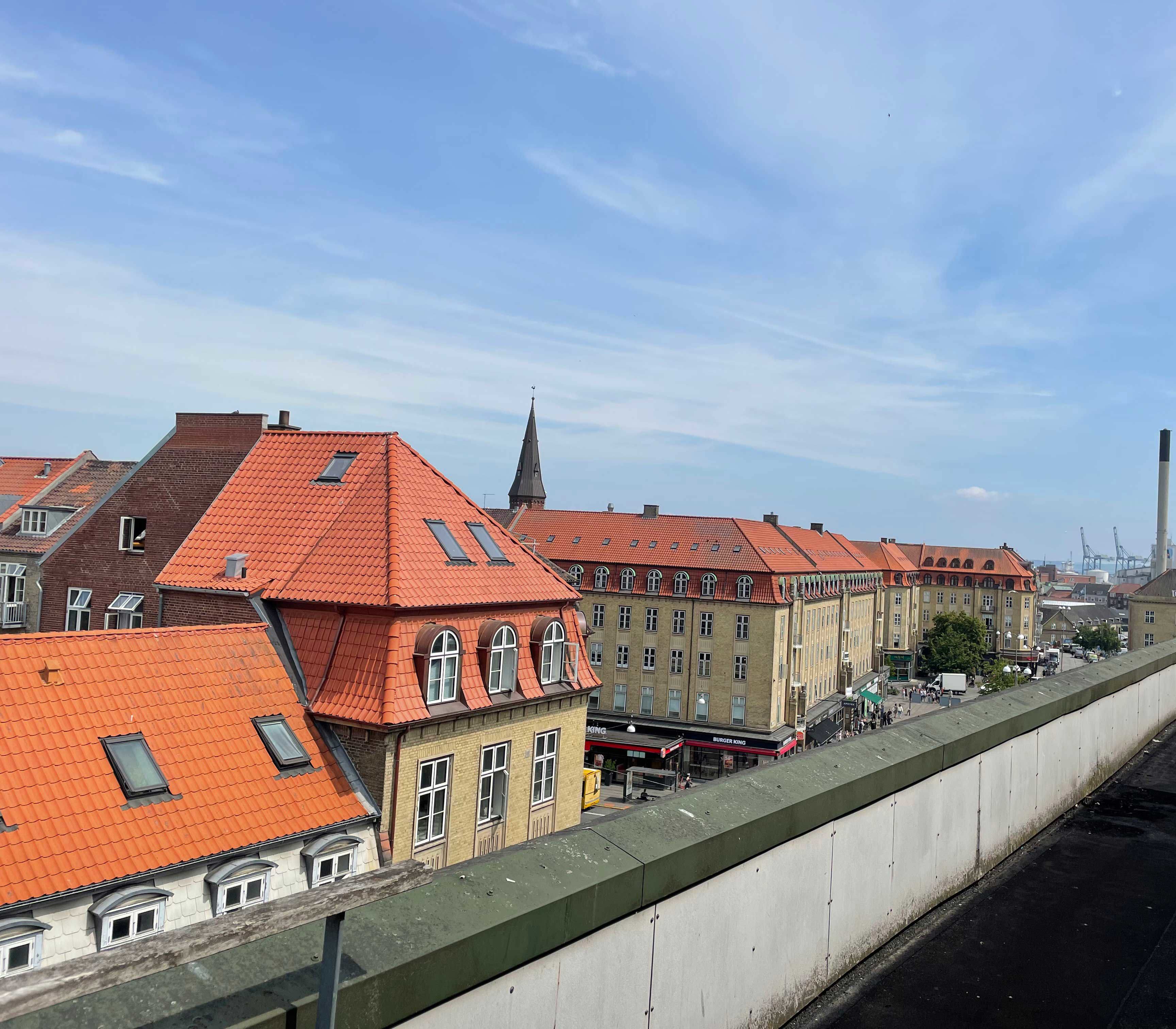 Markant ejendom i det centrale Aarhus opført som bladhus for avisen Demokraten. I dag er den indrettet med bolig- og erhvervslejemål.