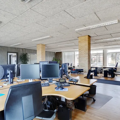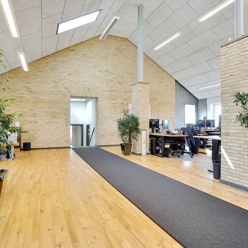 Det stopper dog ikke her. Flere rum har nemlig også dekorative, afrensede murstensvægge, rå betonflader og flotte, velholdte trægulve. Det kommer især til udtryk i arbejdsmiljøet i stueetagen og i det højloftede rum på første sal. Begge fremstår som rare og indbydende arbejdsrum med masser af kant og karakter.