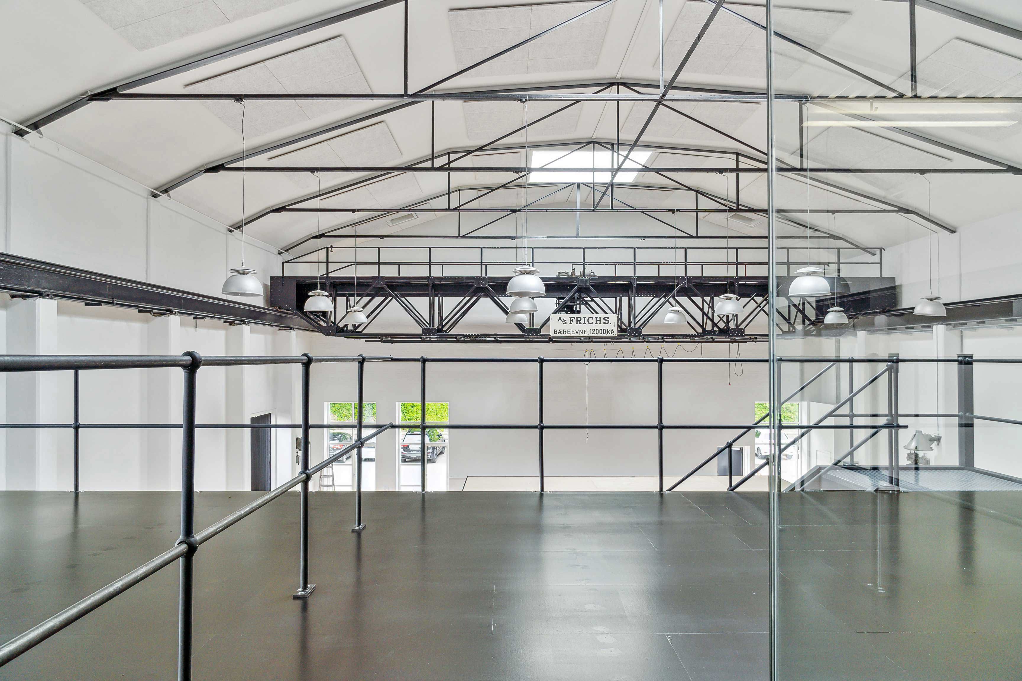 De tidligere produktionshaller er åbnet med nye vinduespartier, så dagslyset igen kan fylde rummene, mens stålkonstruktioner, bjælker og andre industrielle elementer er bevaret som en del af bygningernes karakter.