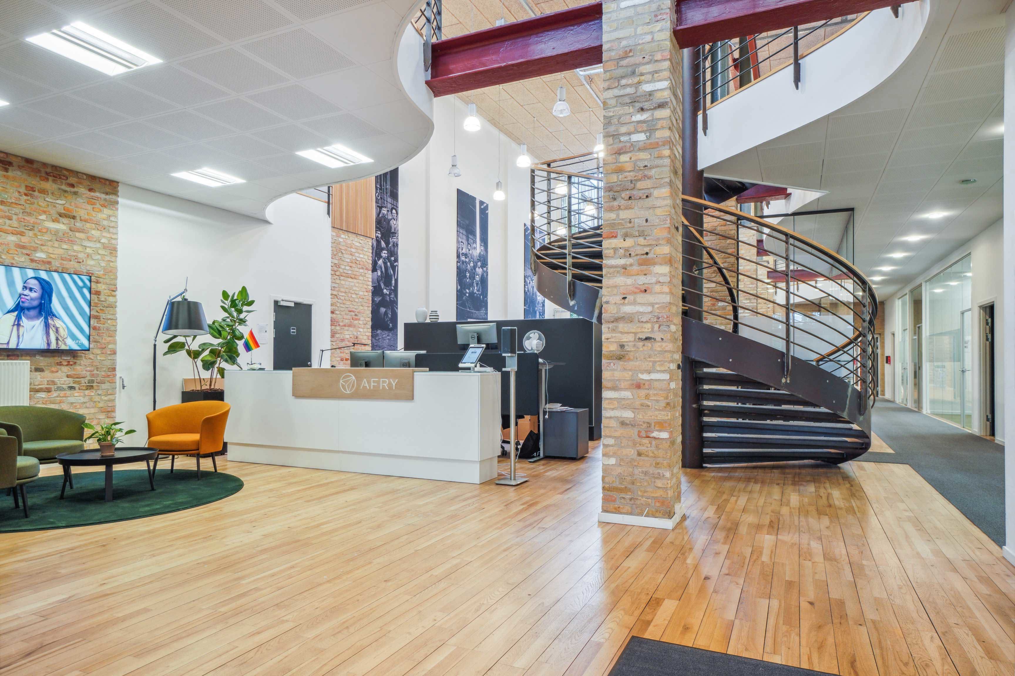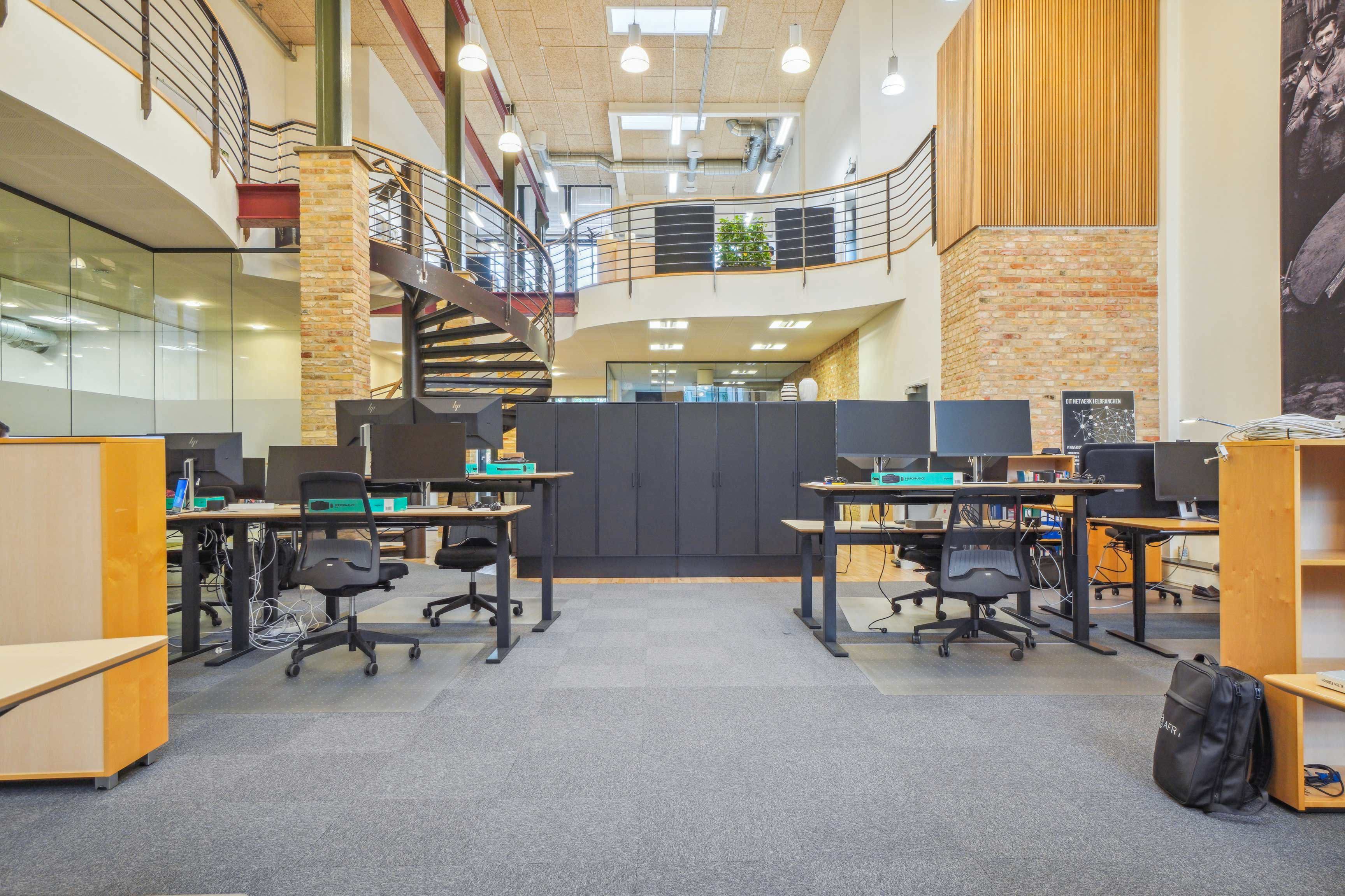 De historiske bygninger er indrettet med respekt for deres oprindelige arkitektur. Synlige konstruktioner, højt til loftet og store vinduespartier giver rummene karakter og gode arbejdsforhold, hvor lys, materialer og proportioner skaber en særlig atmosfære.
