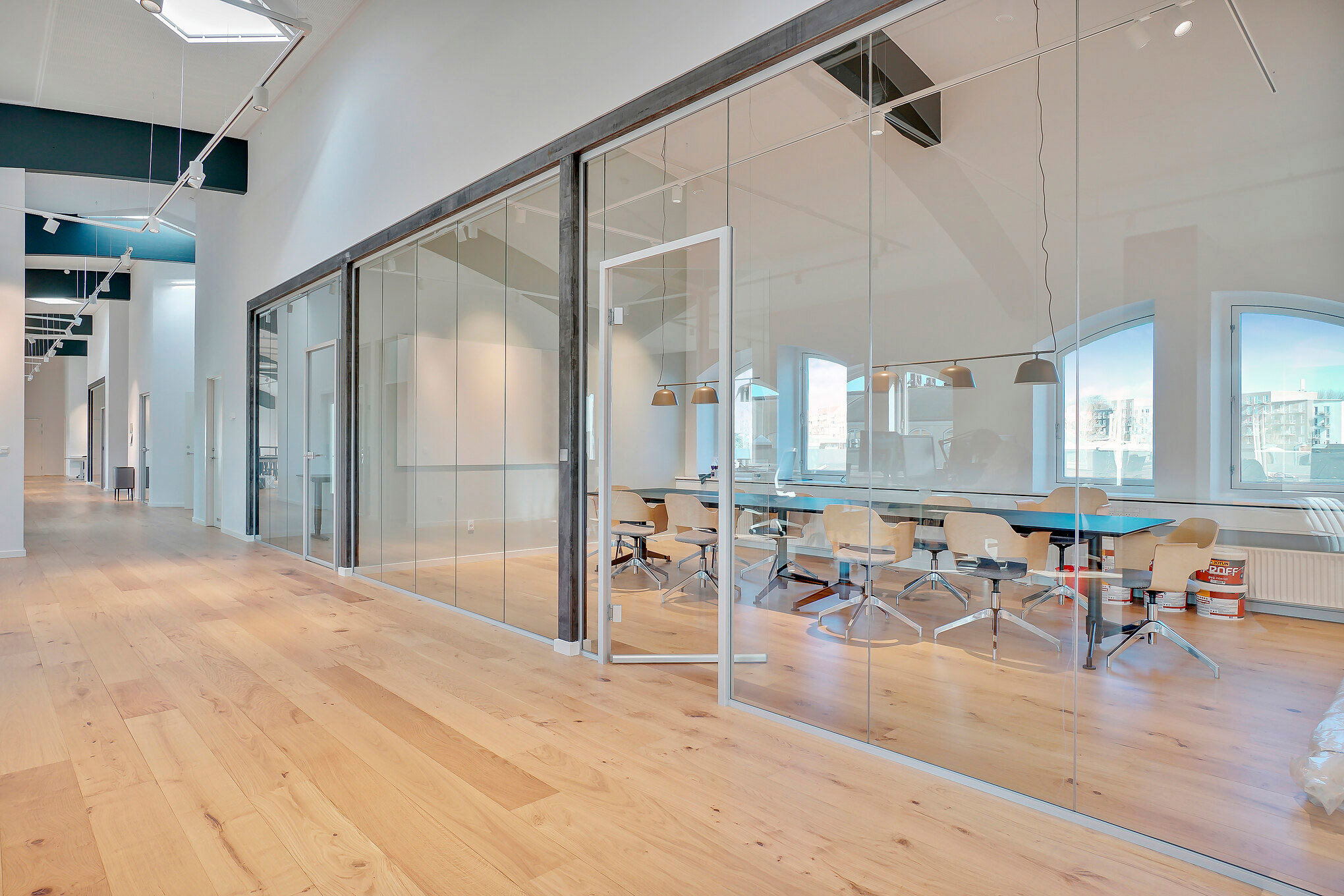 Lejemålene spænder fra mindre kontorer til større sammenhængende erhvervsarealer, hvor virksomheder kan indrette både arbejdspladser, mødefaciliteter og kreative zoner i rammer, der kombinerer industriel historie med nutidig funktionalitet.