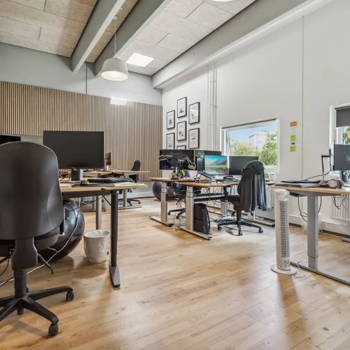 Bygningens hjerte er nu et imponerende rum med loft til kip, som på grund af hallens højde giver et fantastisk luftigt storrumskontor.