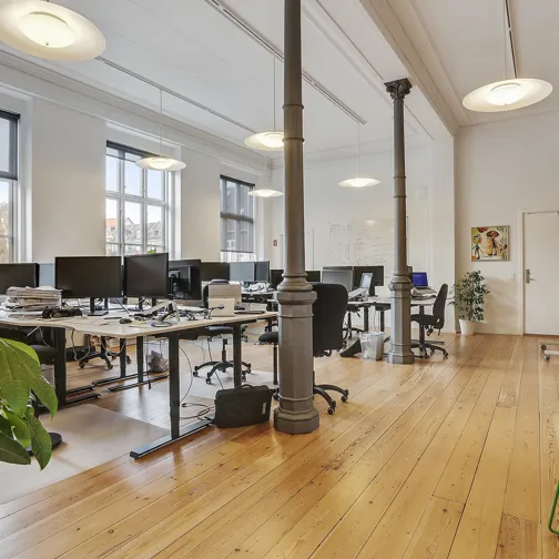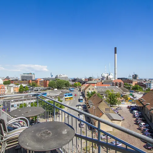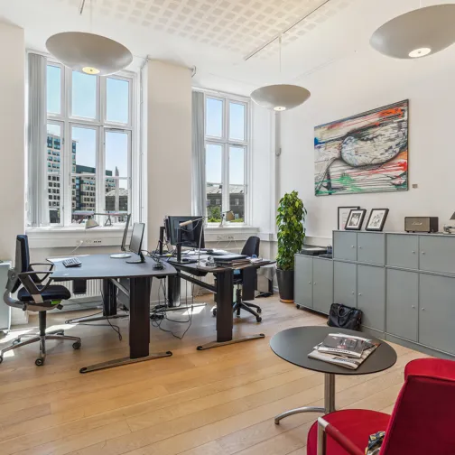 Tæt placeret på Aarhus Banegård, gågaderne og med udsigt til togenes og letbanens glidende trafik findes denne smukke røde hjørneejendom, der er indrettet som kontorlejemål. Ejendommen er opført i 1877 og har oprindeligt været anvendt af De Danske Statsbaner – DSB. Siden da er ejendommen gennemrenoveret med nænsom respekt for ejendommens karakteristik, så den i dag rummer fem etagers kontorlejemål i forskellige størrelser. Der er desuden et stort parkeringsareal.