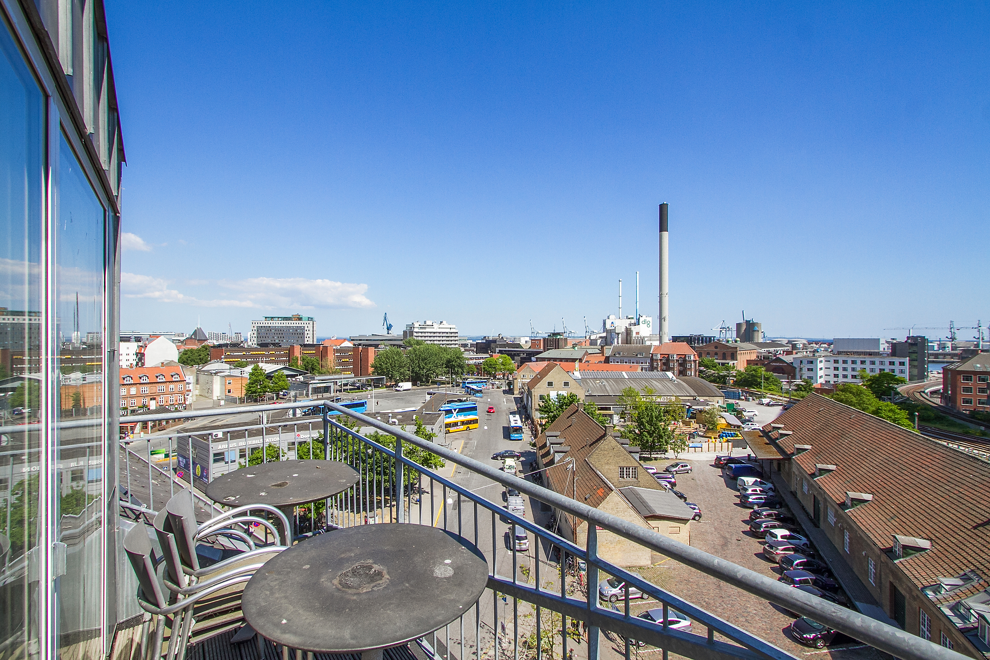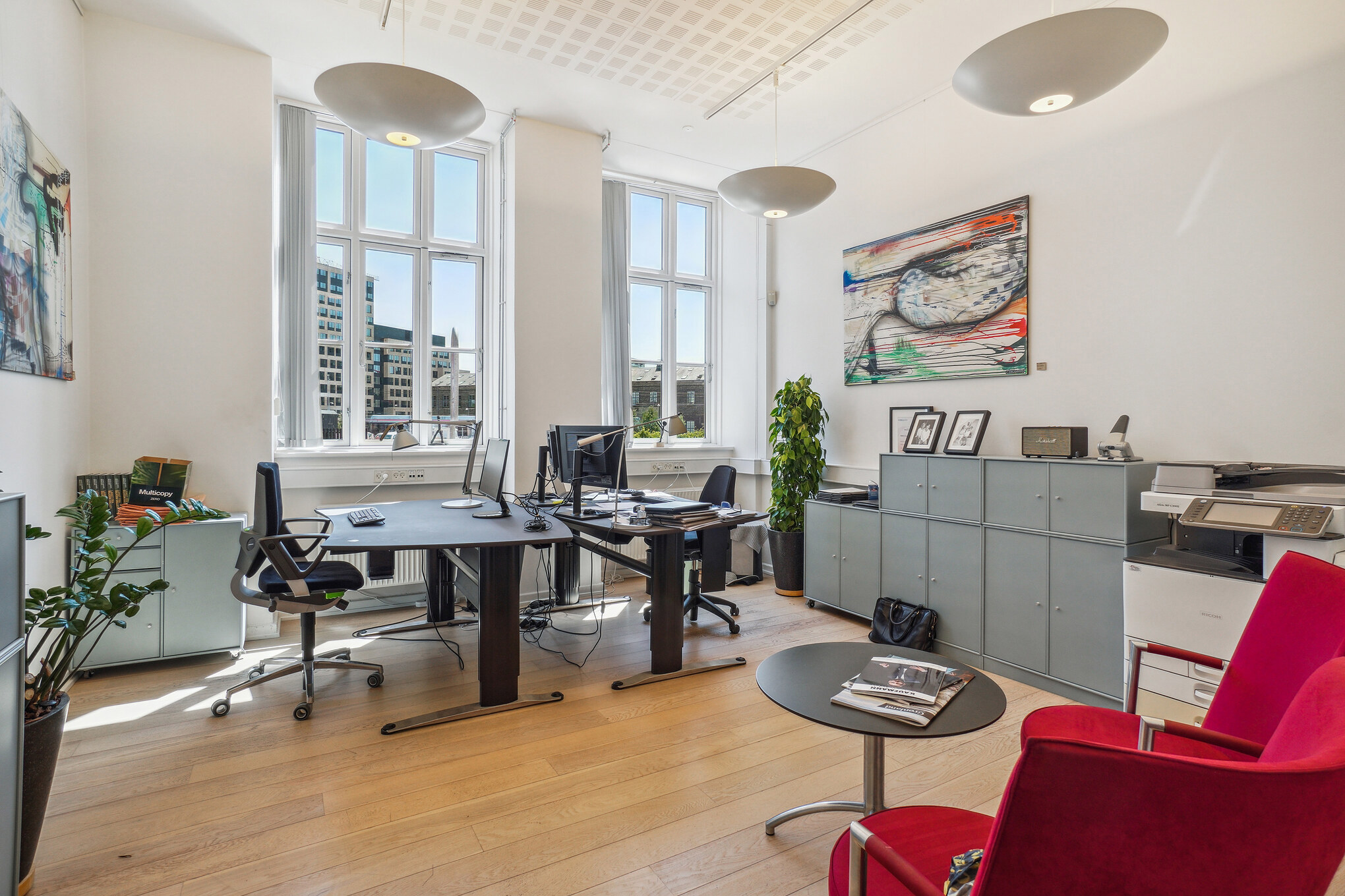Tæt placeret på Aarhus Banegård, gågaderne og med udsigt til togenes og letbanens glidende trafik findes denne smukke røde hjørneejendom, der er indrettet som kontorlejemål. Ejendommen er opført i 1877 og har oprindeligt været anvendt af De Danske Statsbaner – DSB. Siden da er ejendommen gennemrenoveret med nænsom respekt for ejendommens karakteristik, så den i dag rummer fem etagers kontorlejemål i forskellige størrelser. Der er desuden et stort parkeringsareal.