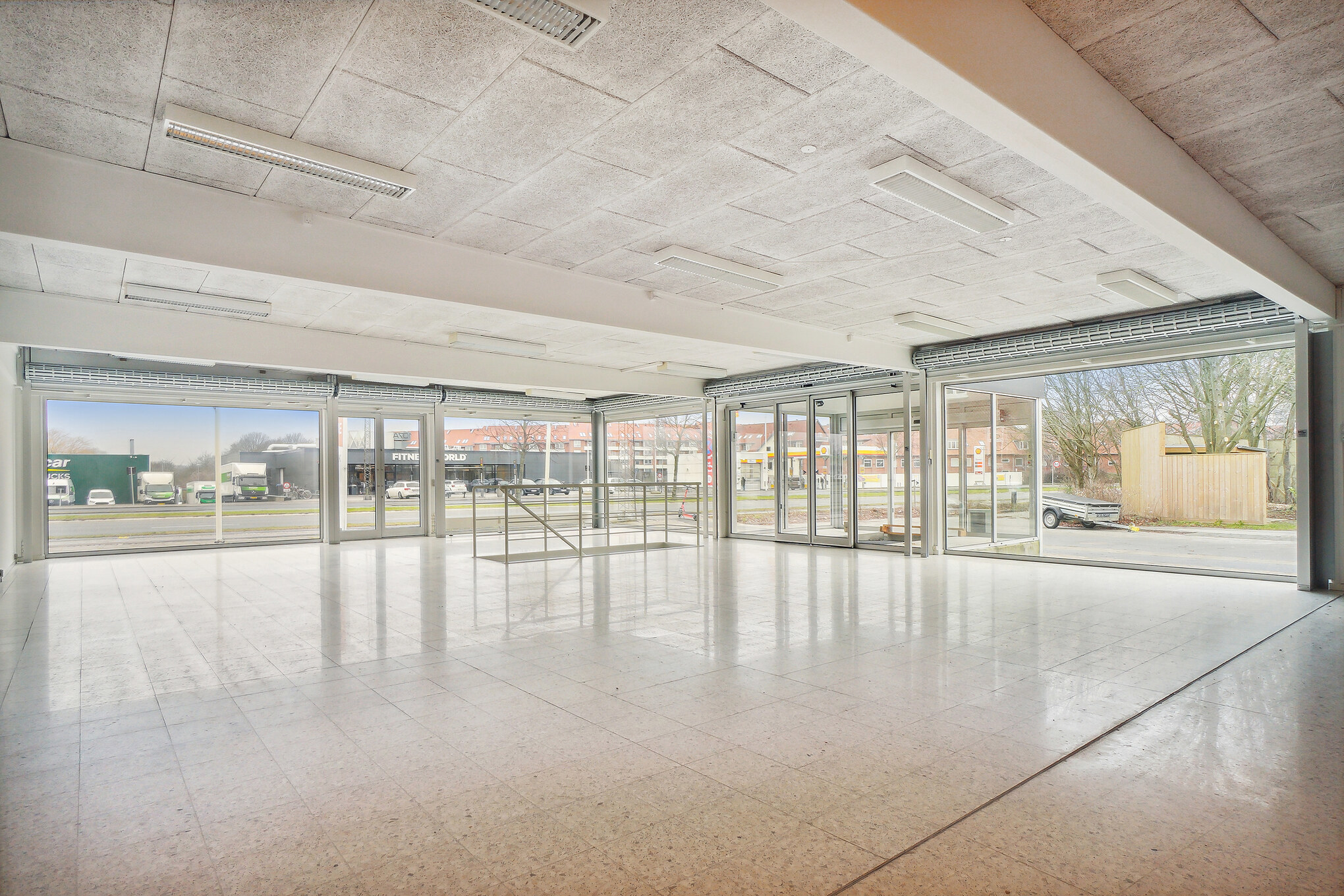 Velbeliggende butiksejendom med flere lejemål. Alle har store glaspartier og synlig facade ud mod Skanderborgvej, som bidrager til yderst gode eksponeringsmuligheder og stor synlighed fra gaden.