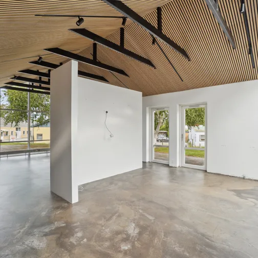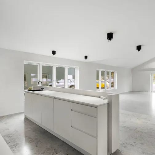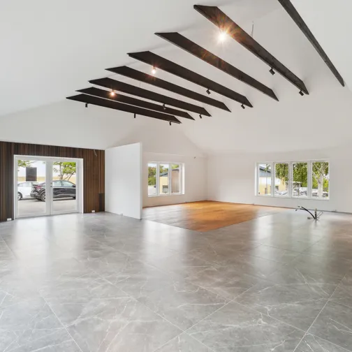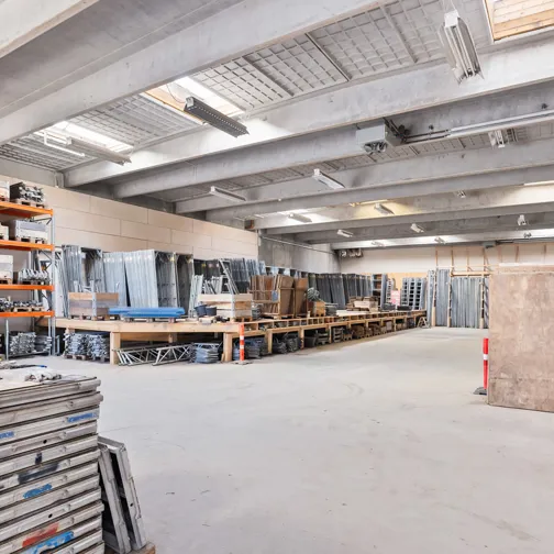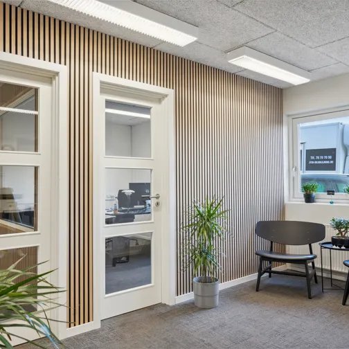 På en mindre sidevej til Lystrupvej i Risskov, tæt ved motorvejstilkørslen, dukker denne markante erhvervsejendom op. Dette er et klassisk eksempel på, hvordan Ejendomsselskabet Olav de Linde har forandret en tidligere industribygning til topmoderne erhvervslejemål indrettet med imponerende industrielle detaljer i form af skillevægge af store glasruder, rå murstensvægge og væginstallationer i lyse egetræspaneler, som giver rummet en fantastisk akustik. Denne ejendom er udlejet til flere forskellige lejere, blandt andet som kontordomicil, produktionslokaler, showroom og lager.