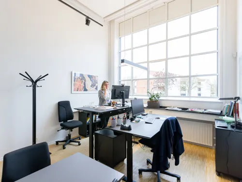 Moderne kontorfællesskab i Thrige Firkanten i Odense C. Fleksible kontorpladser med fuld service i historiske rammer tæt på byliv og parkering.